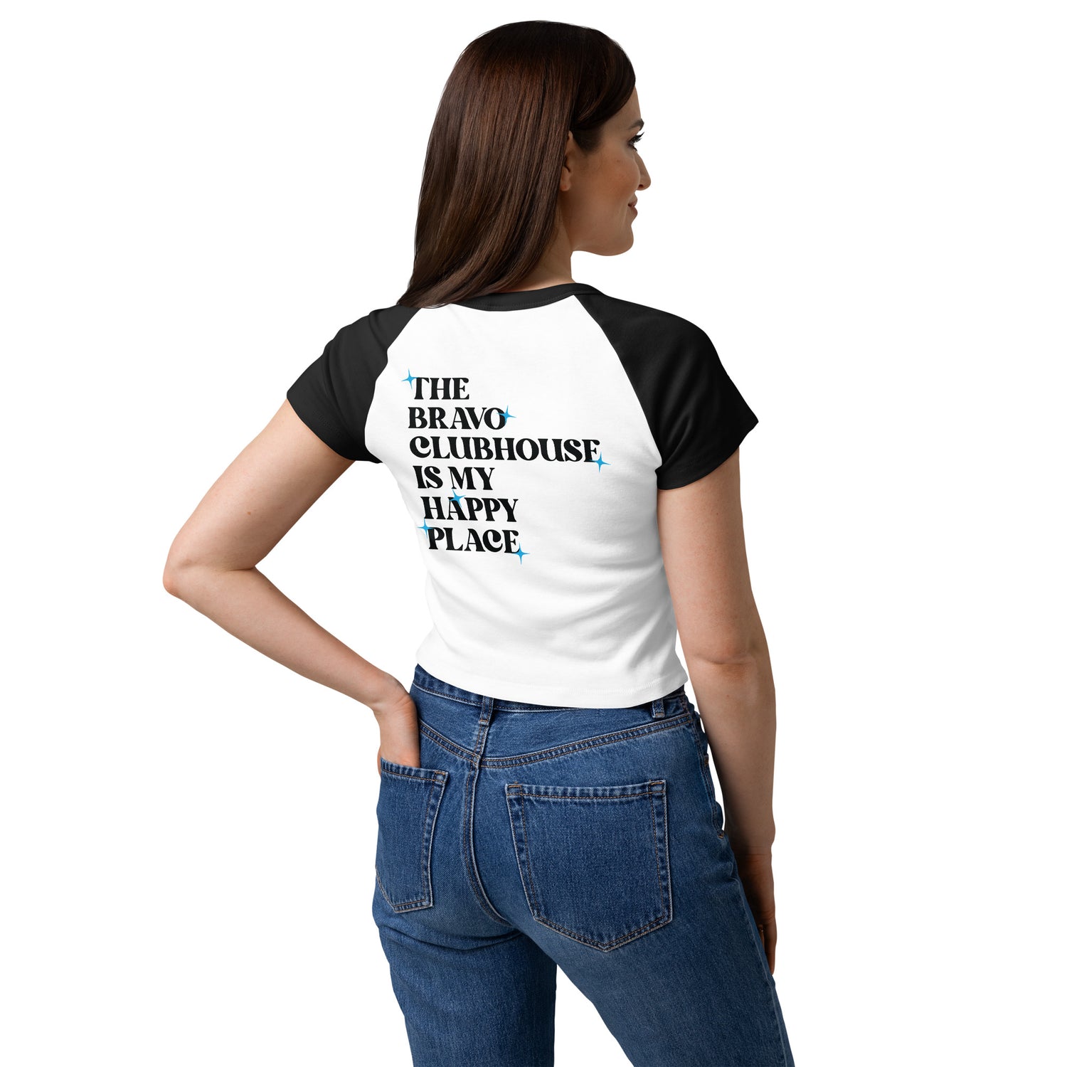 Bring a touch of classic Clubhouse charm to your wardrobe with the Watch What Happens Live "The Bravo Clubhouse Is My Happy Place" Raglan Tee. This isn’t just a casual top; it’s a high-quality, sporty tribute to the best seat in the house, the one right in front of your TV.