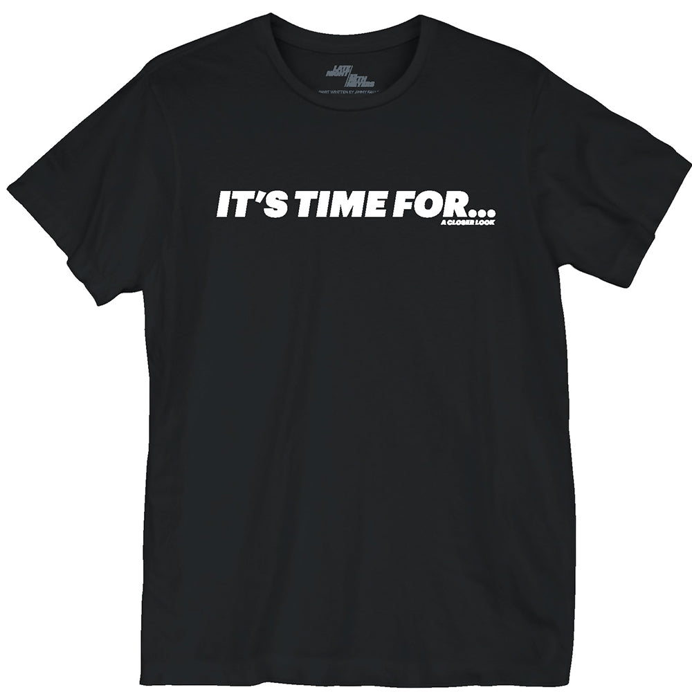 A product of the Strike Force Five Podcast conversation featuring 30 Rock hosts Seth Meyers and Jimmy Fallon; this exclusive parody tee involves a Closer Look into the Late Night merchandise. Featuring shirt writing credit to Jimmy Fallon in the neck label - this tee is sure to make you lean in to late night!