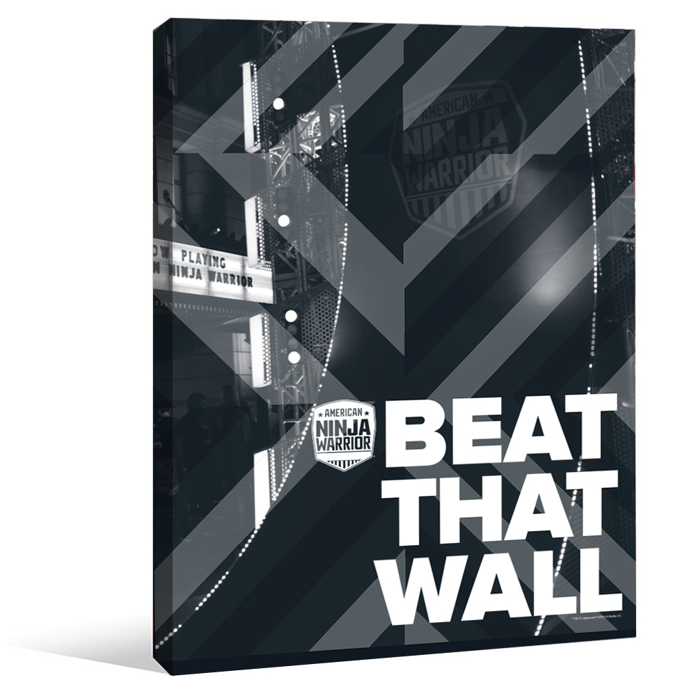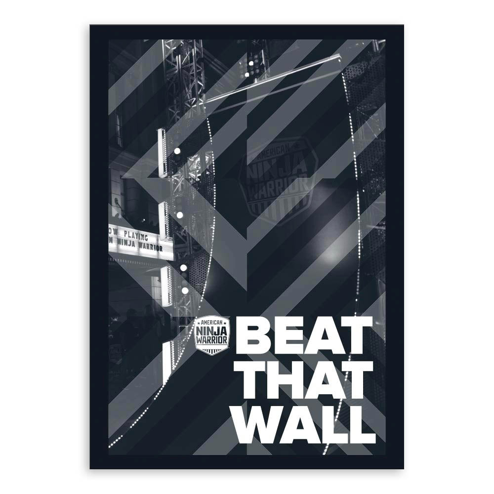 The warped wall is a lot bigger in person than it appears on this canvas. The warped wall is a classic American Ninja Warrior obstacle and is featured in almost every course! Get this canvas that features the one and only warped wall with the phrase “Beat That Wall”.
