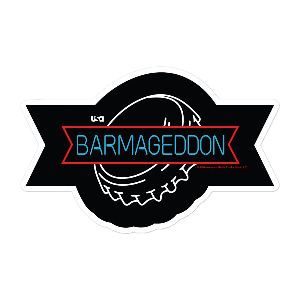 Add this Barmageddon Logo Sticker to your water bottle, laptop case or favorite folder and show your love for the new USA show! This sticker is 5.5" x 5.5", making it perfect for any piece you'd like to spice up with new merch.