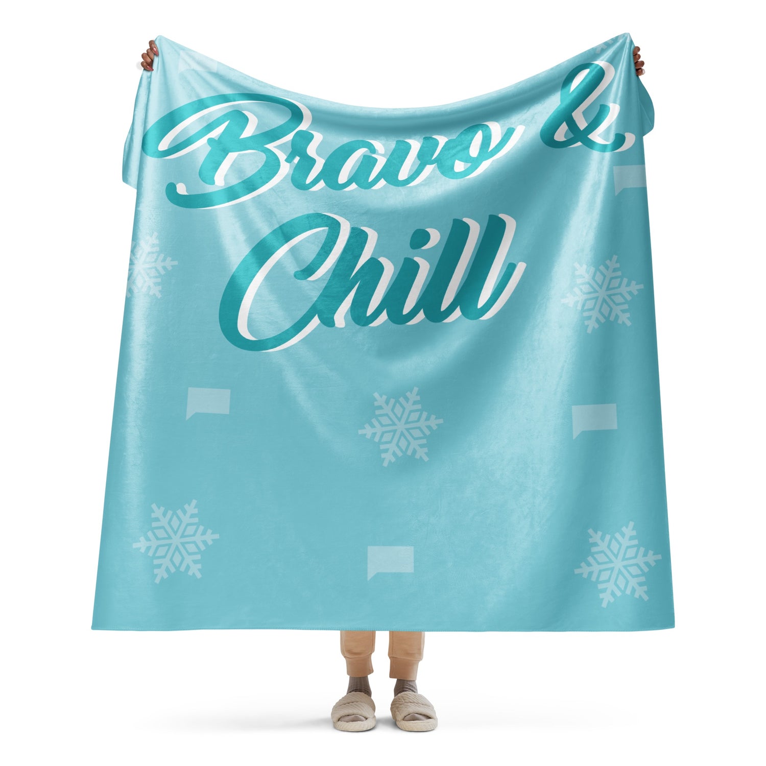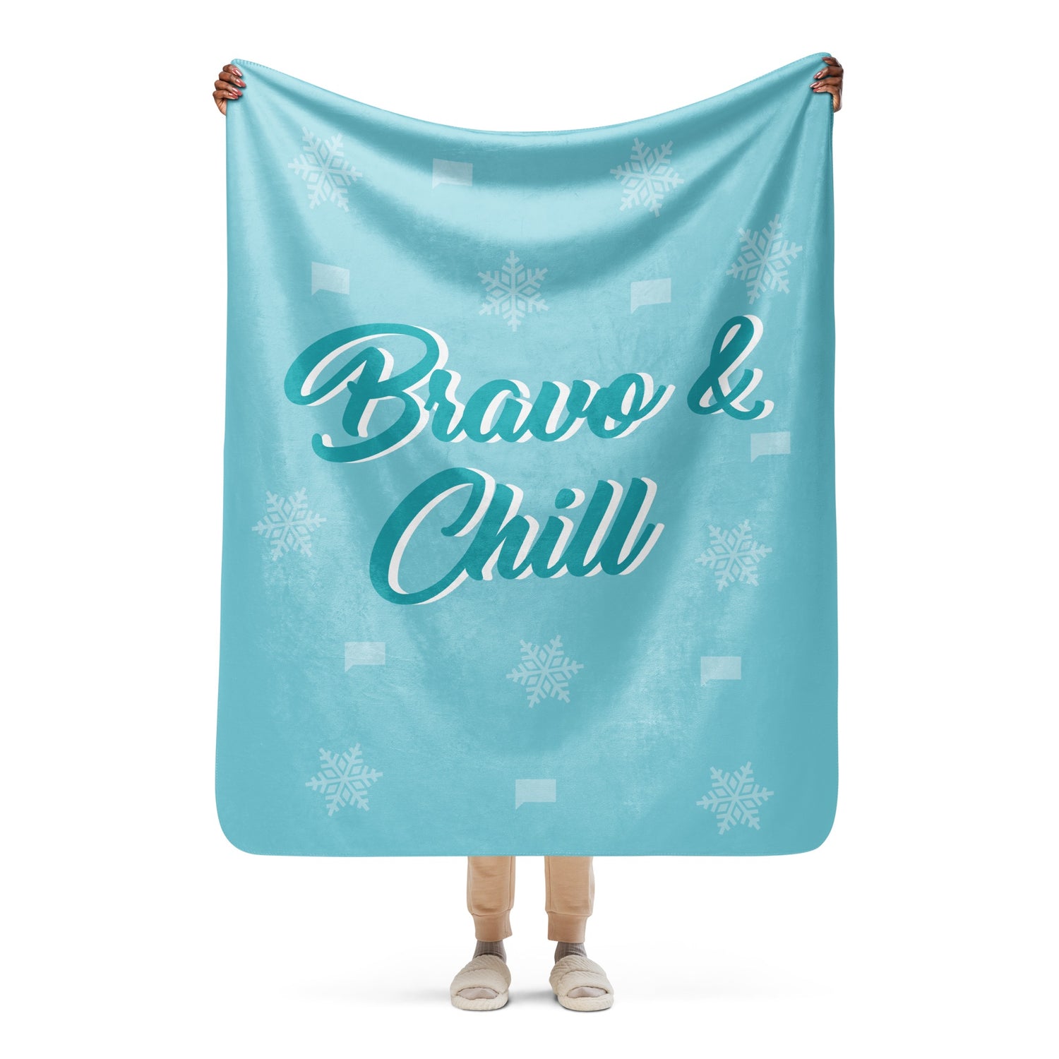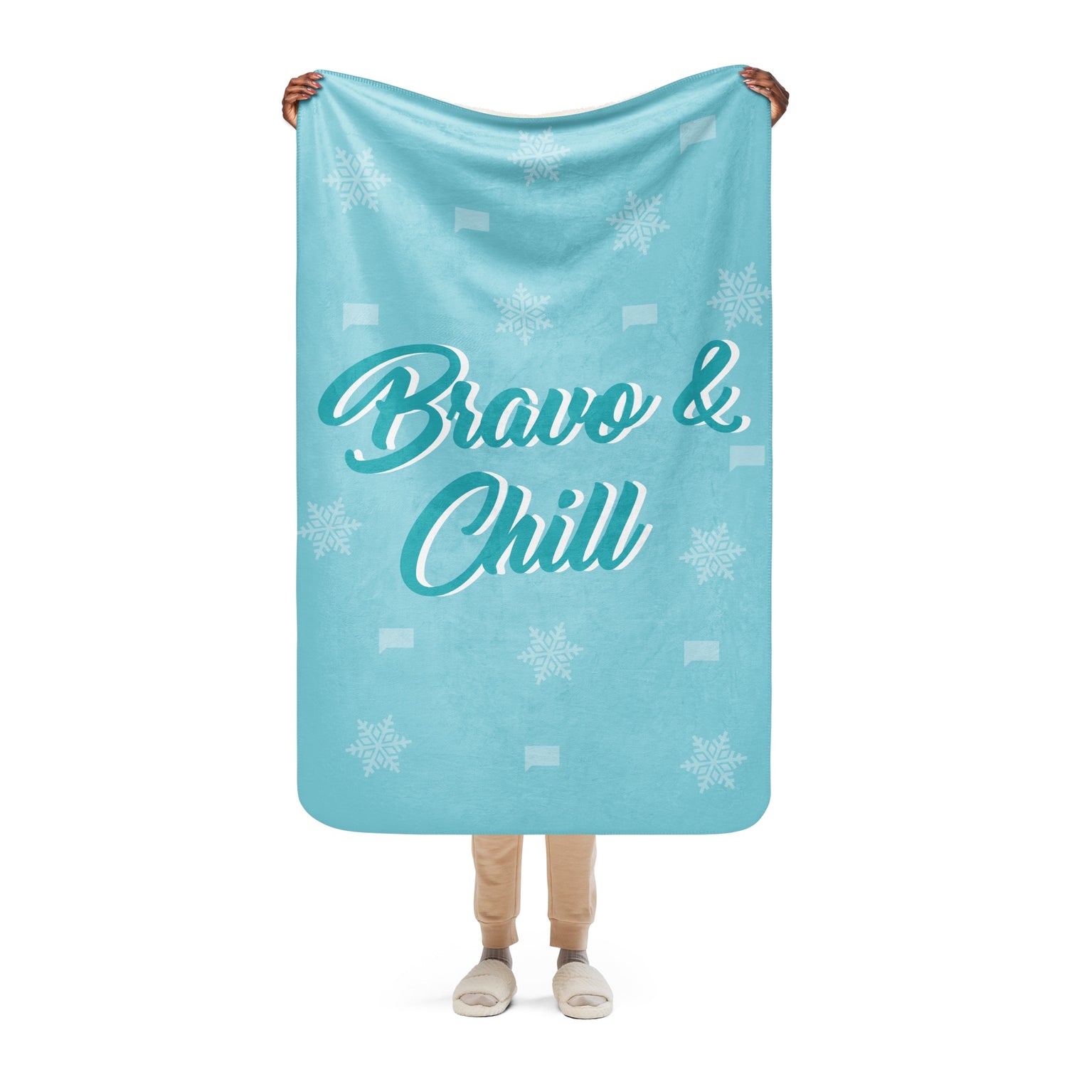 Wrap yourself in luxurious comfort with the Bravo & Chill Sherpa Blanket, perfect for your next binge-watching marathon. Whether you're diving into the latest Real Housewives drama or catching up on your favorite Bravo shows, this ultra-soft blanket is designed to keep you cozy.