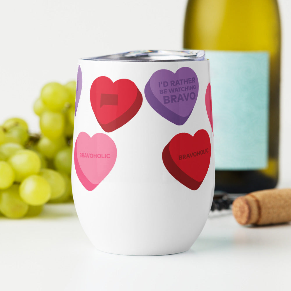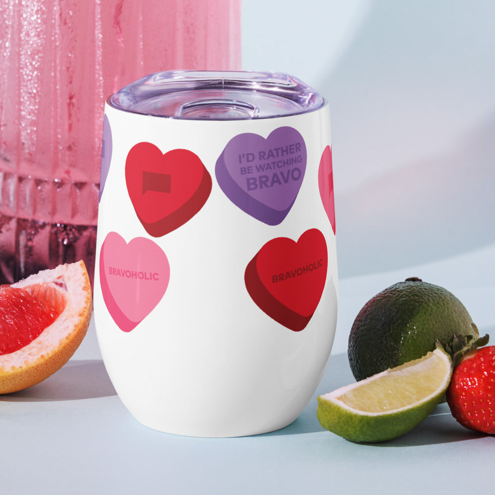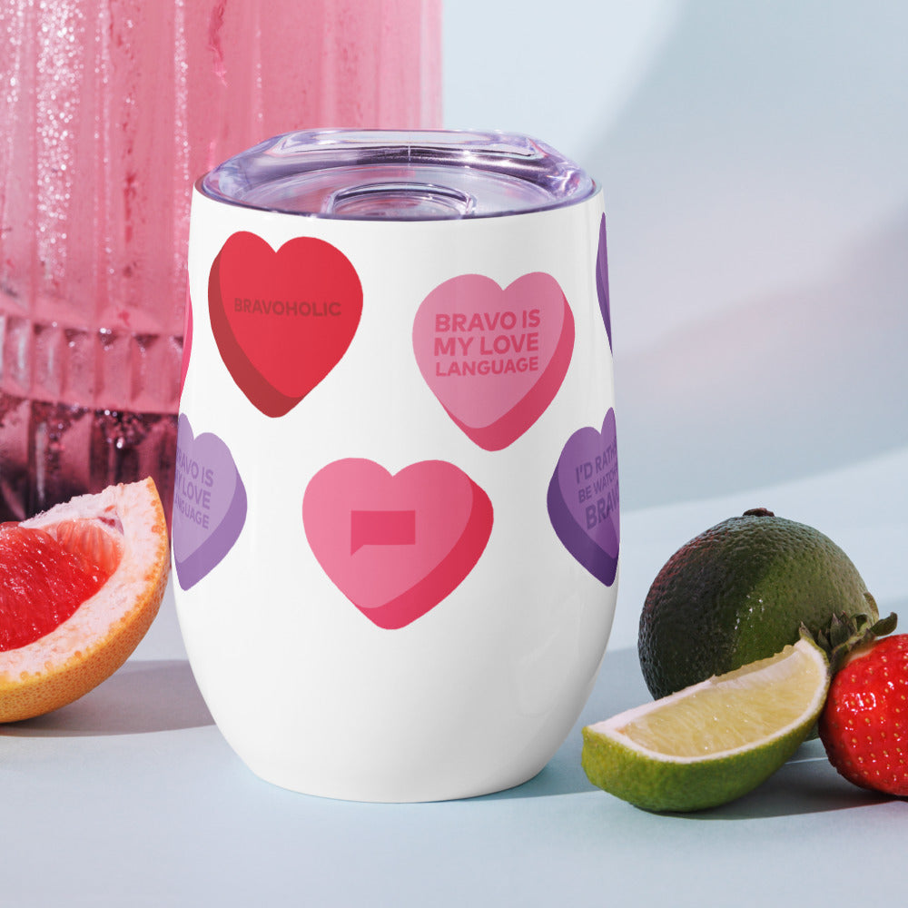 Sip in style with the Bravo Conversation Hearts Wine Tumbler! Perfect for Bravoholics who love Bravo!