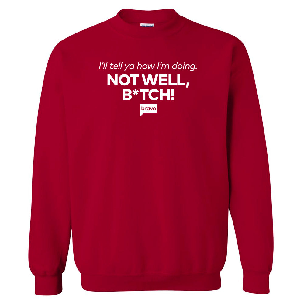 With this cozy How Am I Doing? Crewneck Sweatshirt, you will always be doing well, b*tch! Inspired by Dorinda Medley?s hilarious Season 9 quote, this sweatshirt is a must-have for any fan of The Real Housewives of New York.