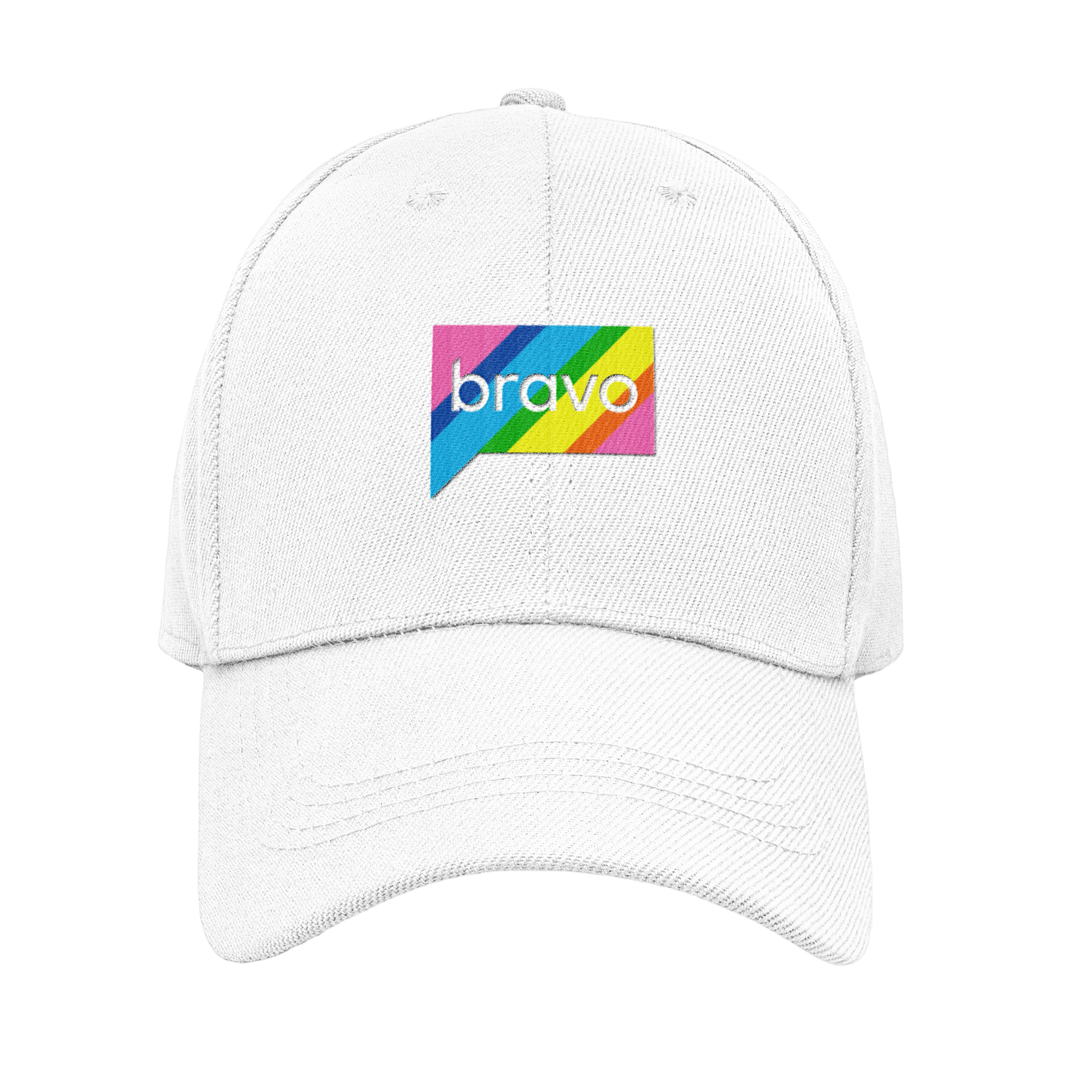 No matter what you wear to your pride celebrations, you can add the perfect finishing touch with this Bravo Rainbow Logo Embroidered Hat. Featuring the Bravo rainbow logo embroidered across the front, this Bravo pride hat lets everyone know that you are a Bravoholic who supports the LGBTQ+ community.