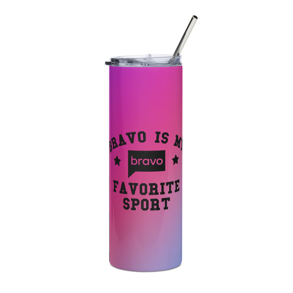Elevate your beverage game with the Bravo Is My Favorite Sport Tumbler – the ultimate drinkware for Bravo enthusiasts! This stylish and functional tumbler features a bold statement that celebrates your love for Bravo TV shows.