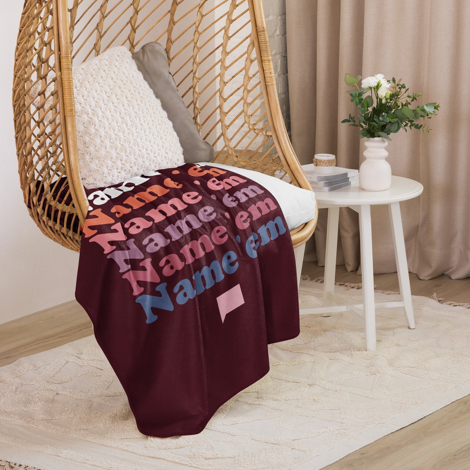 Wrap yourself in luxurious comfort with The Real Housewives of Beverly Hills Name Em' Sherpa Blanket, inspired by the iconic Sutton Stracke. This ultra-soft, cozy blanket features a stylish design that pays homage to your favorite Housewives, making it a must-have for any fan of the iconic Bravo series.