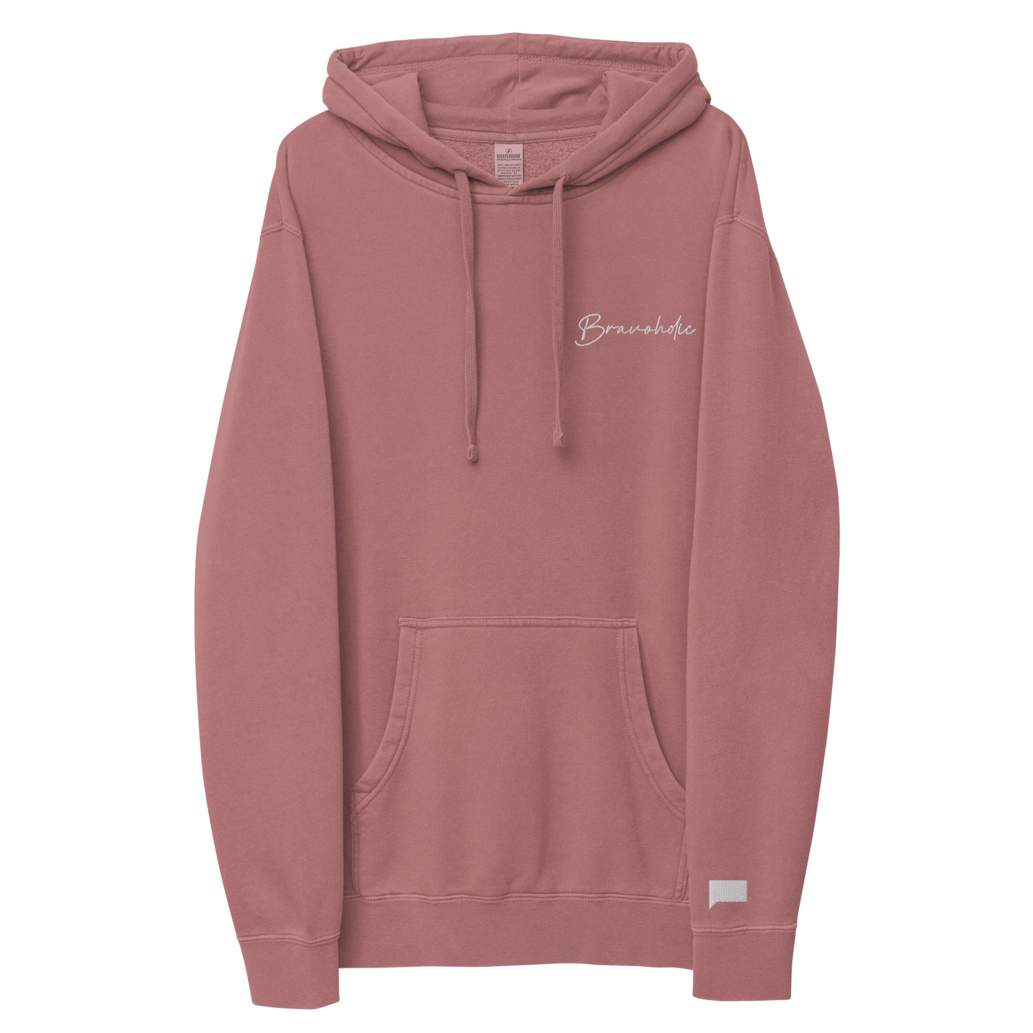 Elevate your style while flaunting your passion for the drama-packed world of Bravo with our Bravoholic Script Embroidered Hoodie. Luxuriously soft, this hoodie is a chic tribute to your favorite guilty pleasure. Whether you're binge-watching iconic moments or strolling the streets, this hoodie ensures you're always dressed to impress, just like the Housewives themselves.