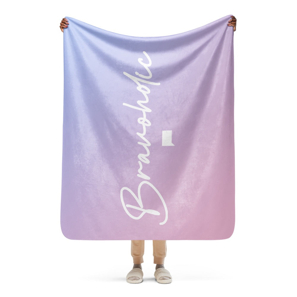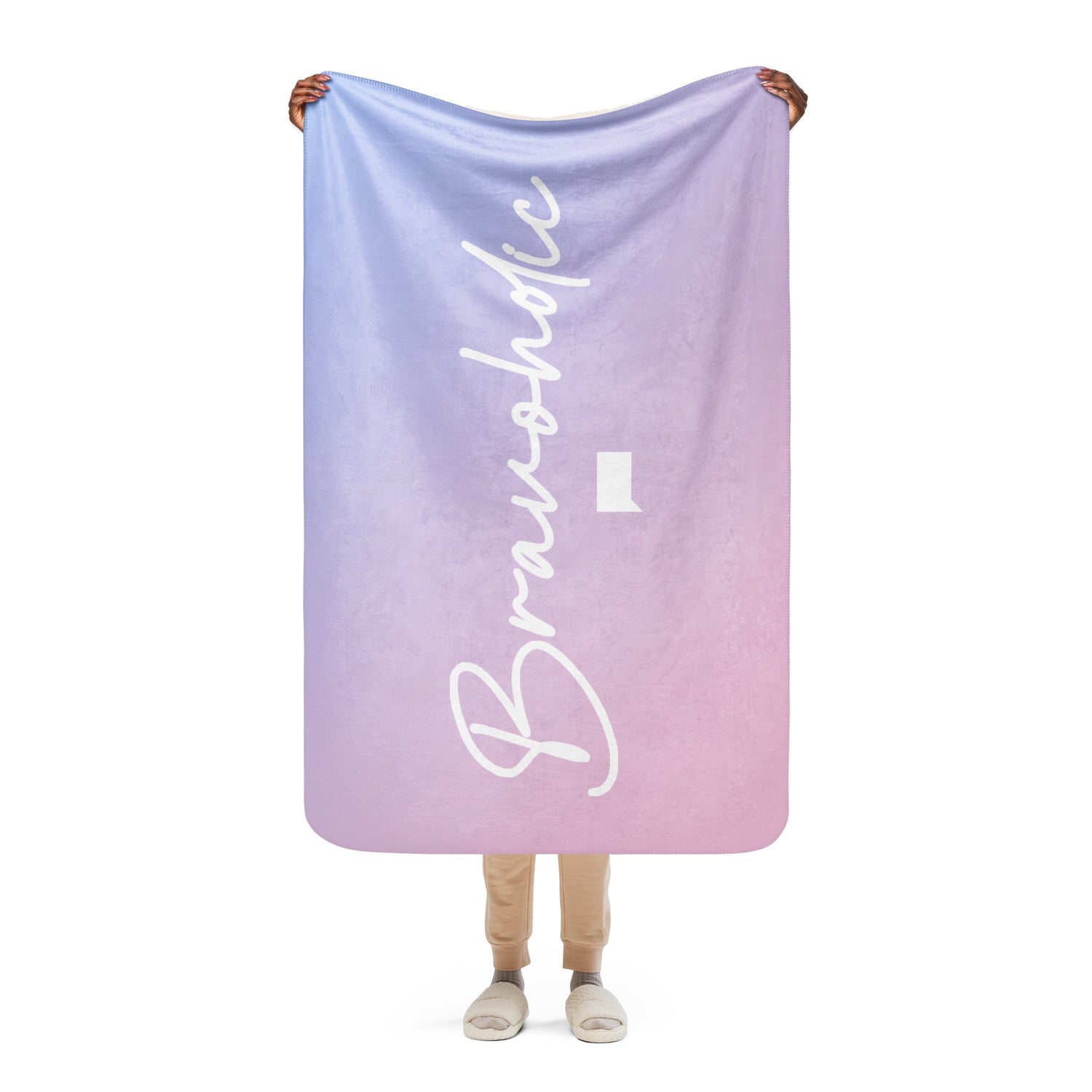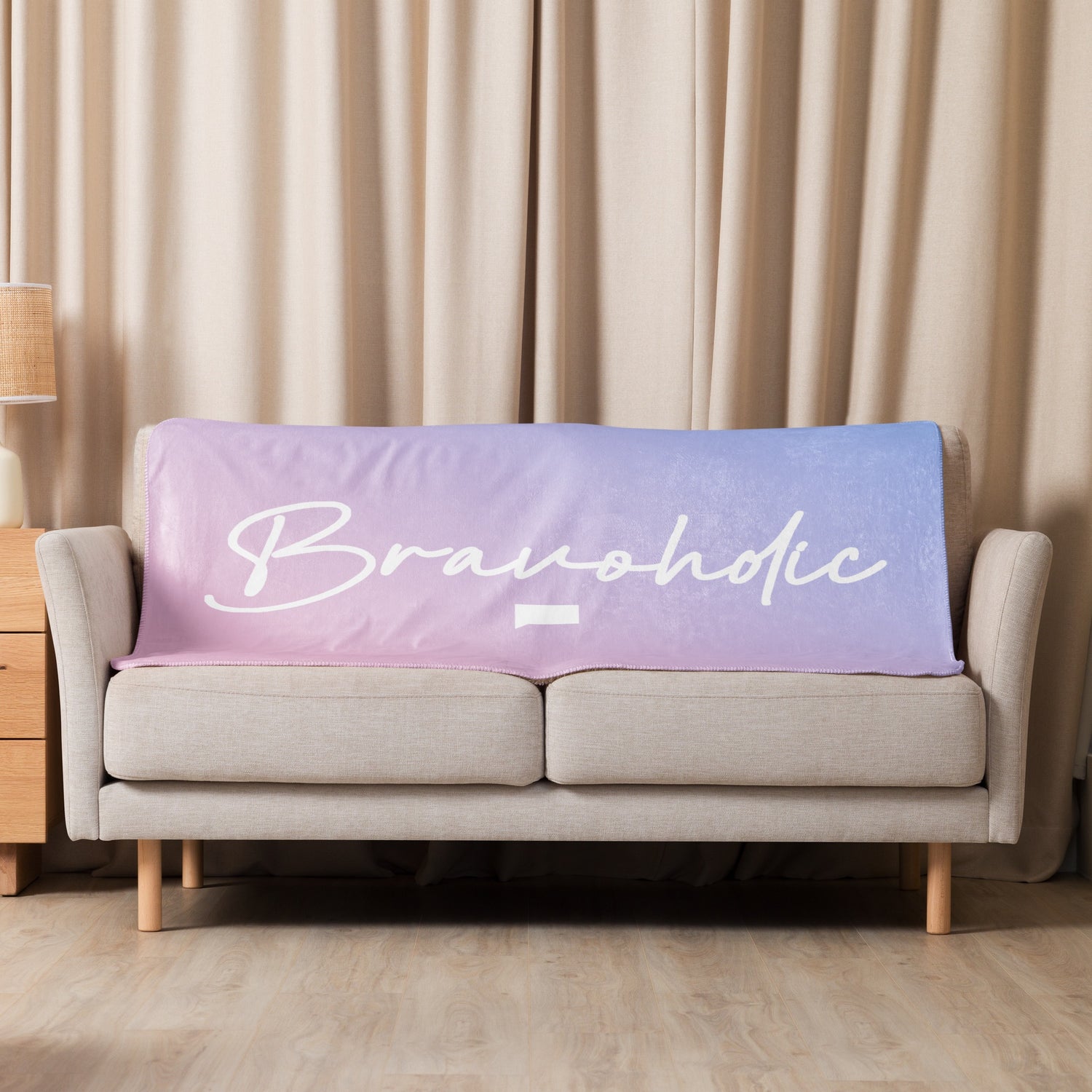 Wrap yourself in ultimate comfort with the Bravoholic Script Sherpa Blanket. Perfect for binge-watching your favorite Bravo shows, this ultra-soft blanket features a chic script design that proudly declares your love for all things Bravo.