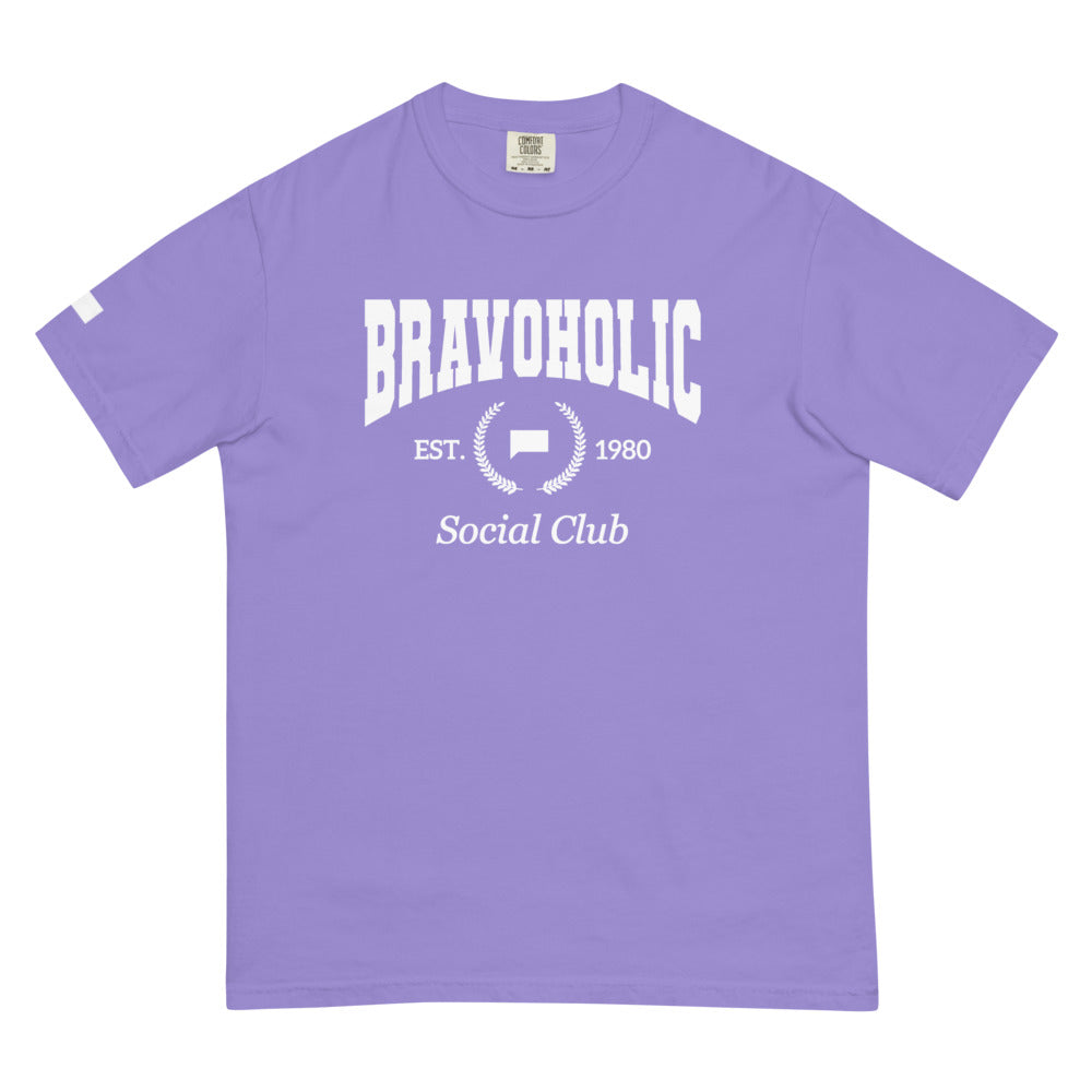 Join the ultimate fan club with the Bravoholic Social Club Comfort Colors T-Shirt! Perfect for the die-hard Bravo fan, this t-shirt lets you showcase your love for all things Bravo in style. Made from soft, high-quality cotton, this Comfort Colors t-shirt offers a relaxed fit and vintage look, making it a go-to piece for any casual outing or Bravo watch party.