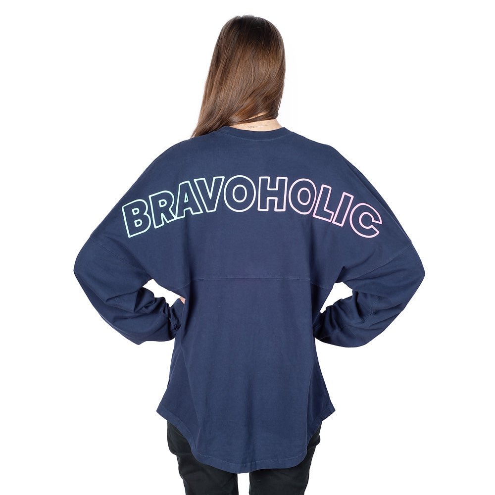 Celebrate your Bravo fandom in ultimate comfort and style with the Bravoholic Spirit Jersey! This cozy, oversized jersey is the perfect fit for any Bravo enthusiast. Made from high-quality, breathable cotton, this spirit jersey combines comfort with a relaxed look, making it perfect for watching your favorite Bravo shows or hanging out with friends.