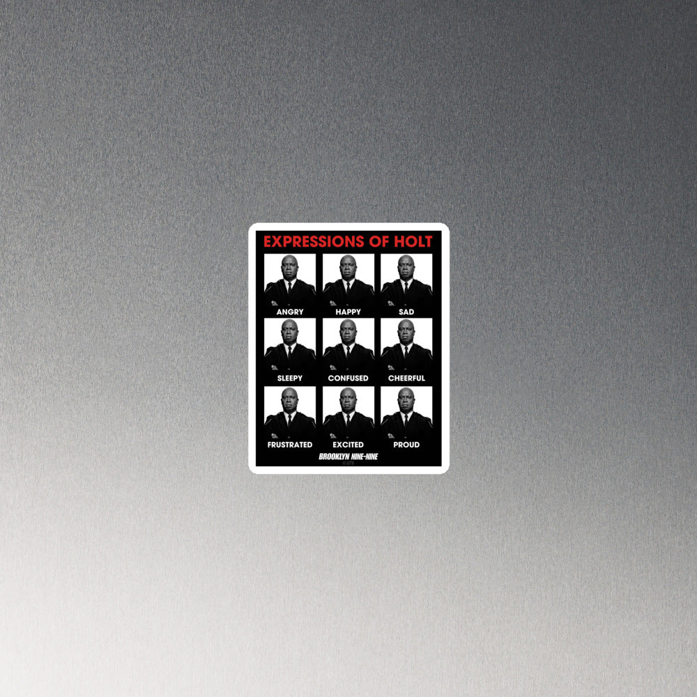 Showcase your love for Brooklyn Nine-Nine with the Expressions of Holt Magnet. Featuring iconic moments from Captain Holt's legendary deadpan expressions, this magnet is a must-have for fans of the show.