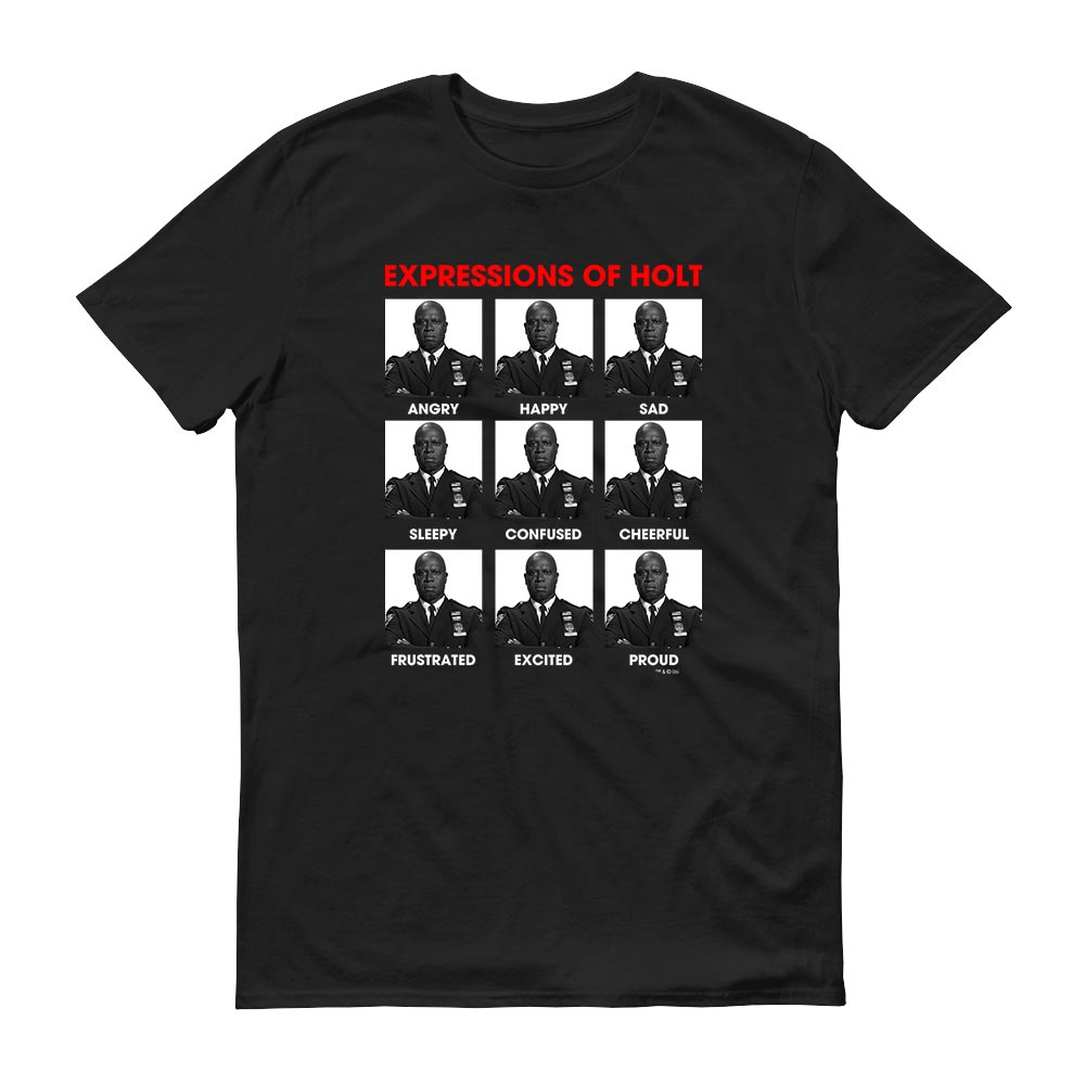 Captain Holt is known among his officers for his lack of facial expressions and emotions. Feel like you’re part of his team with this Brooklyn Nine-Nine Expressions of Holt Men’s Short Sleeve T-Shirt. You will get a sense of what Peralta and everyone else in Brooklyn’s 99th Precinct works with every day in this comfortable tee.