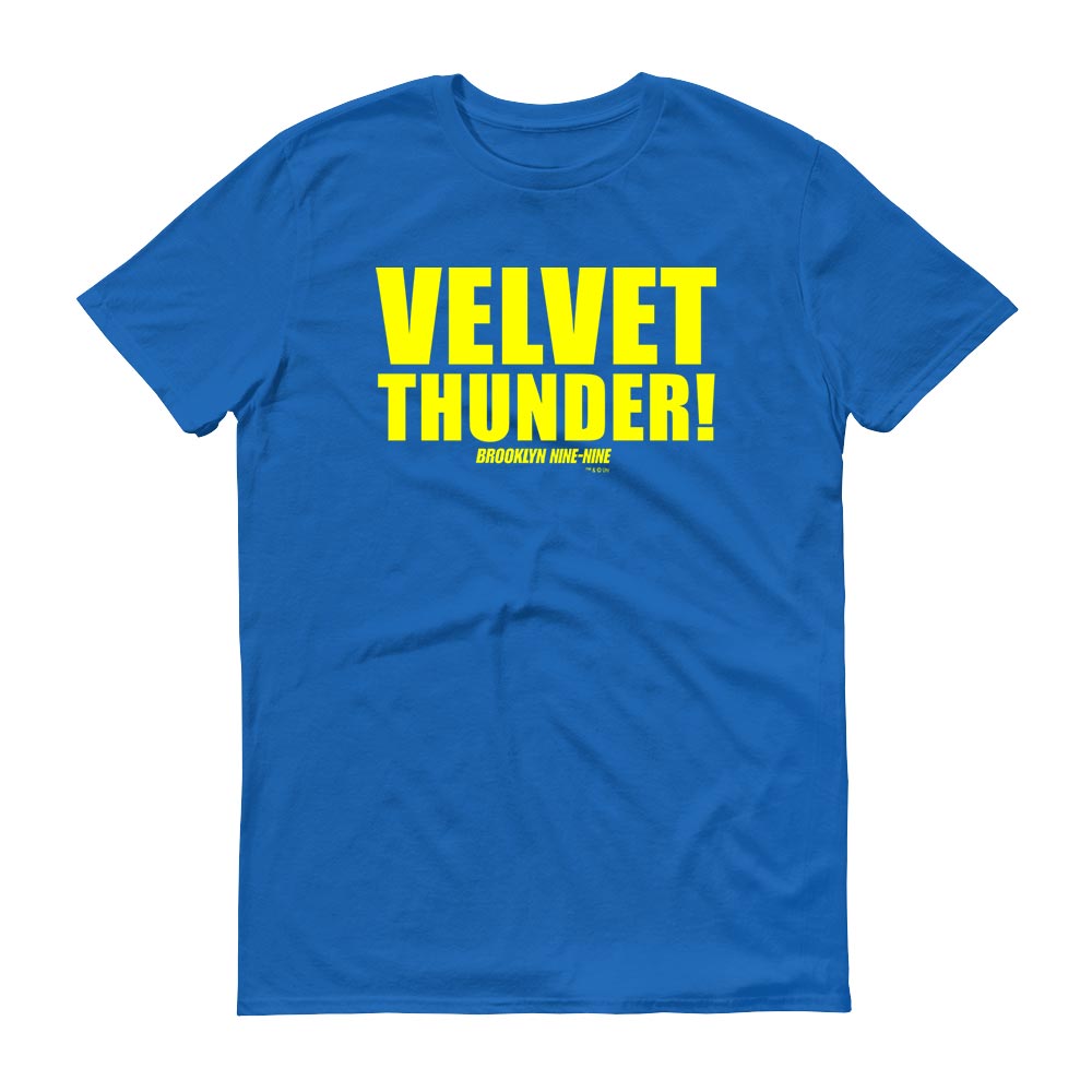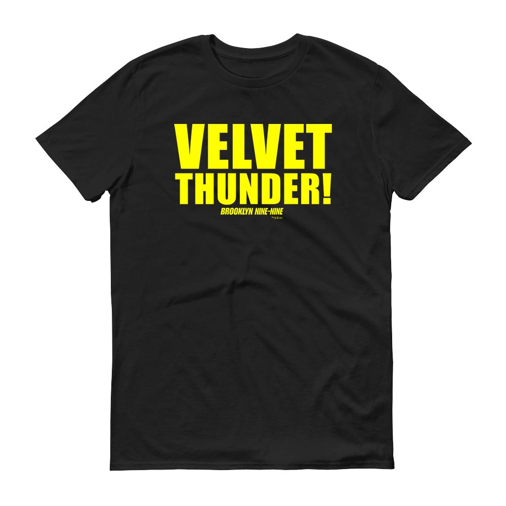 Captain Holt aka Velvet Thunder is just as serious about his new nickname as he is about his job. Show your love for your favorite captain in this Brooklyn Nine-Nine Velvet Thunder Men’s Short Sleeve T-Shirt. This comfortable tee is the best way to show how devoted you are to your favorite comedy.This shirt features short set-in sleeves and a seamless rib knit collar. There are taped neck and shoulder seams for durability and two-needle hemmed sleeves so the bottom won't unravel.