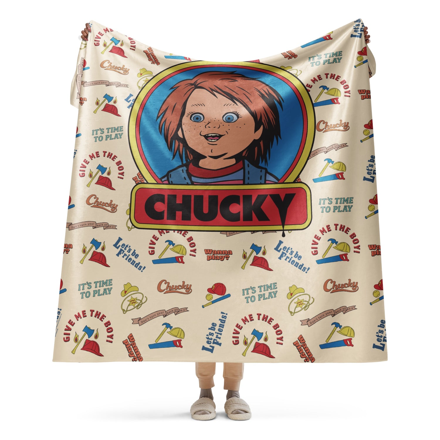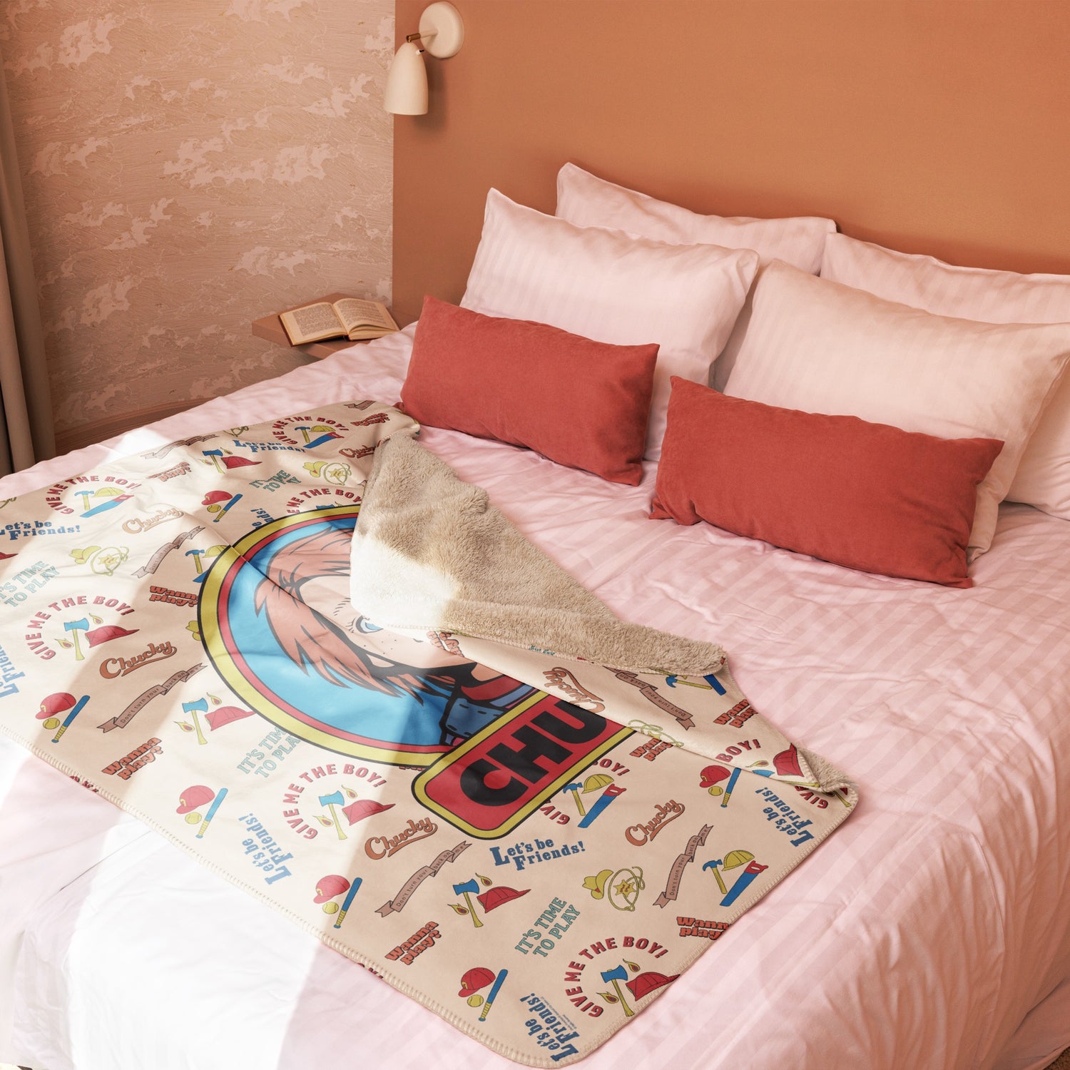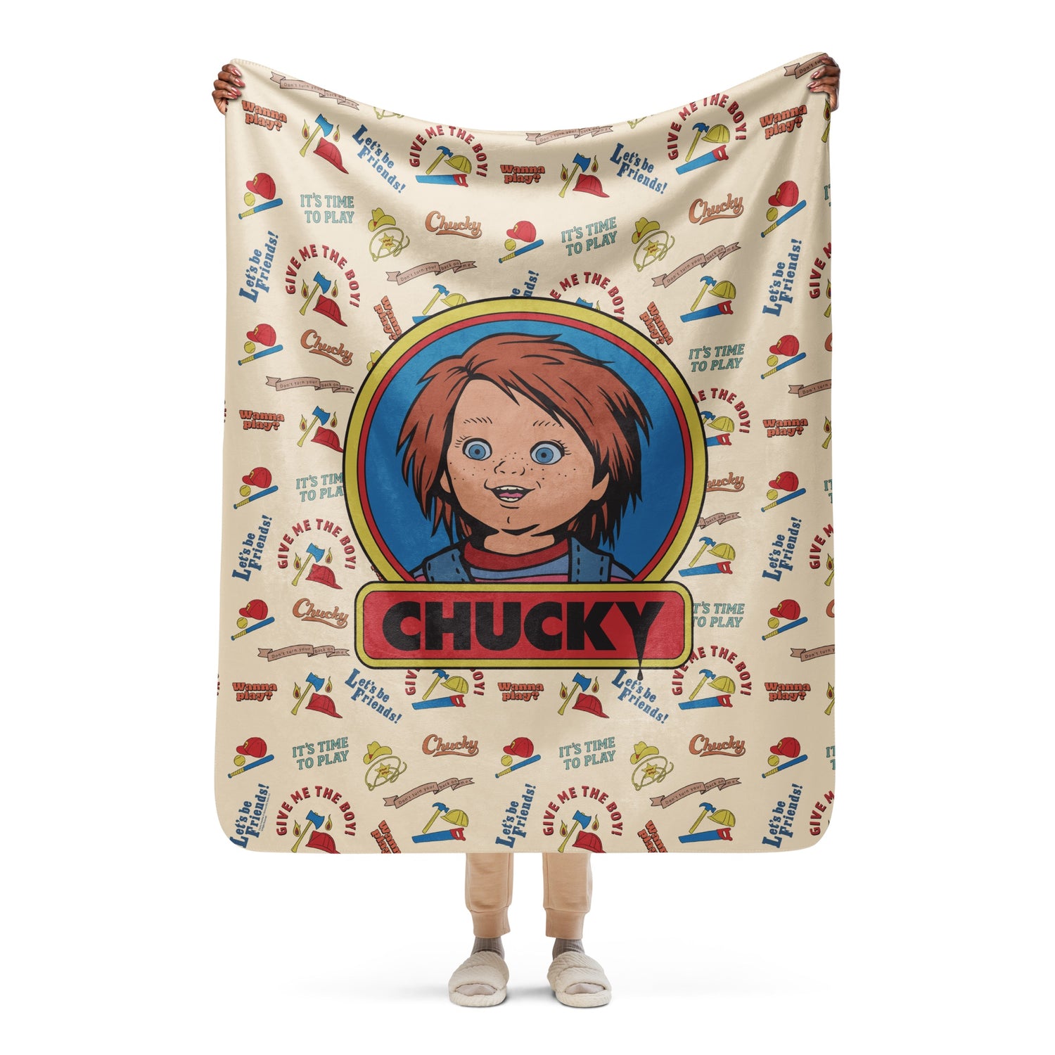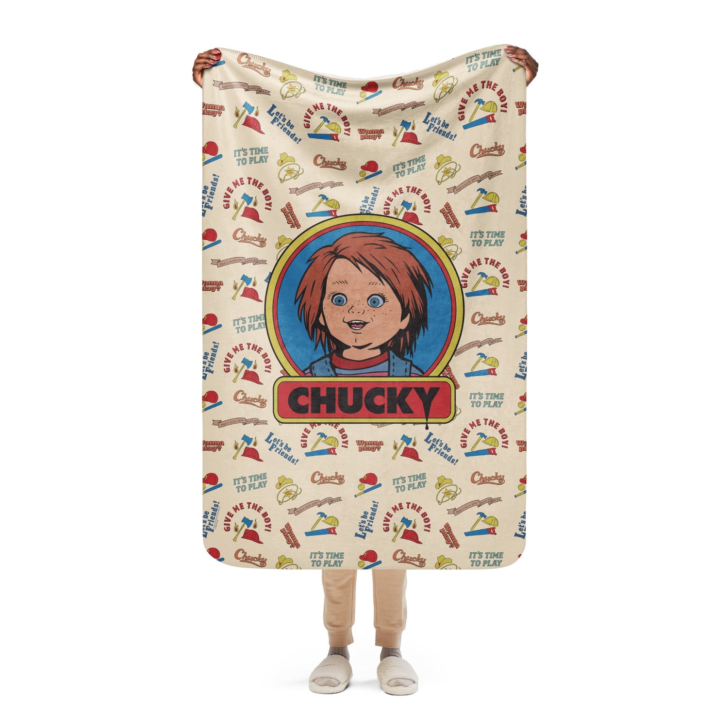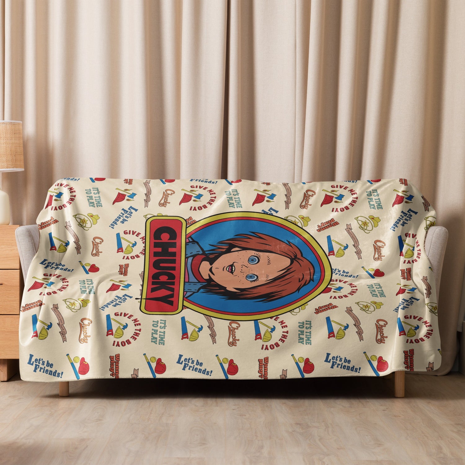 The Chucky Vintage Pattern Sherpa Blanket isn't just a blanket; it's a piece of nostalgia that wraps you in the playful spirit of Chucky. It's the perfect addition to your horror-themed decor or as a thoughtful gift for a fellow enthusiast.