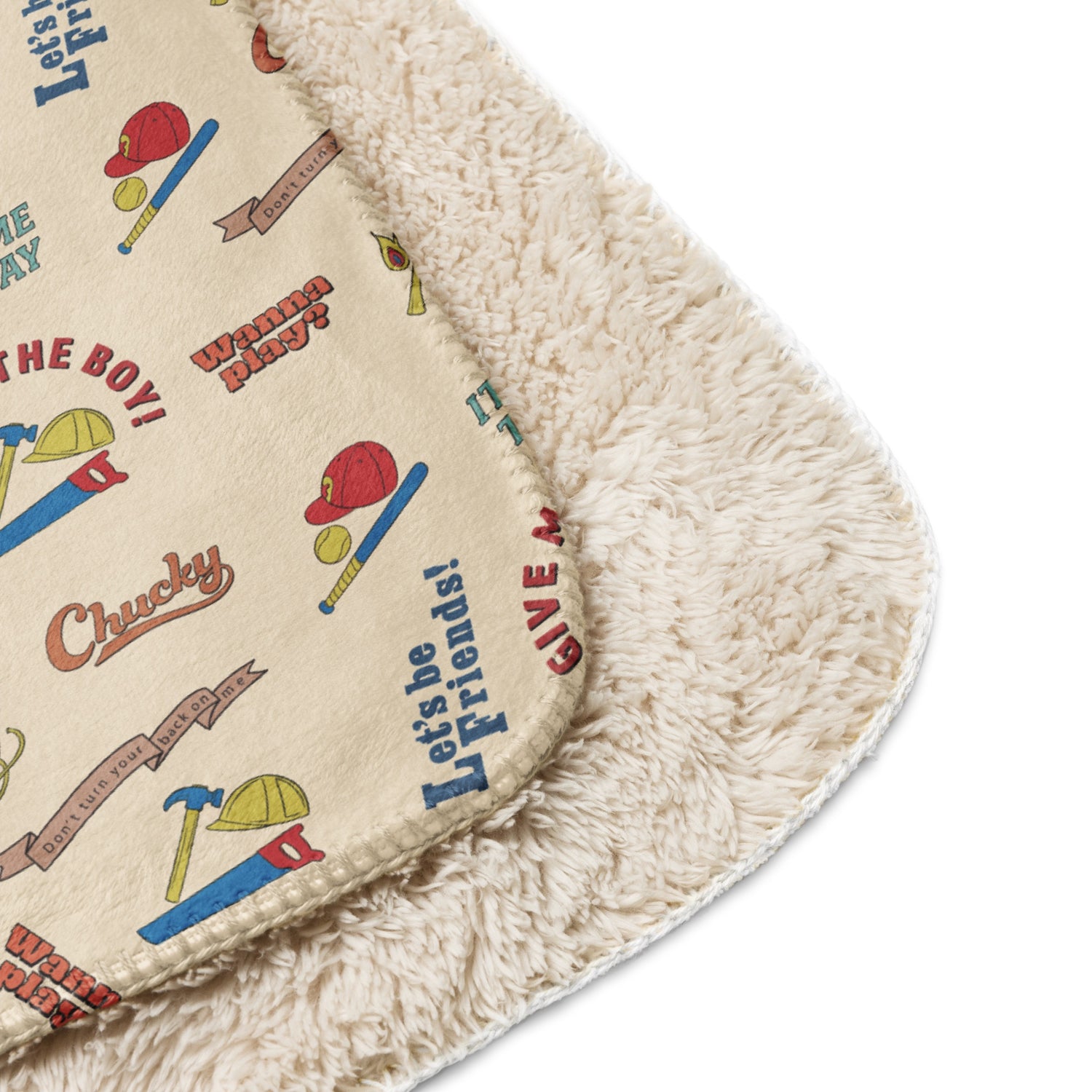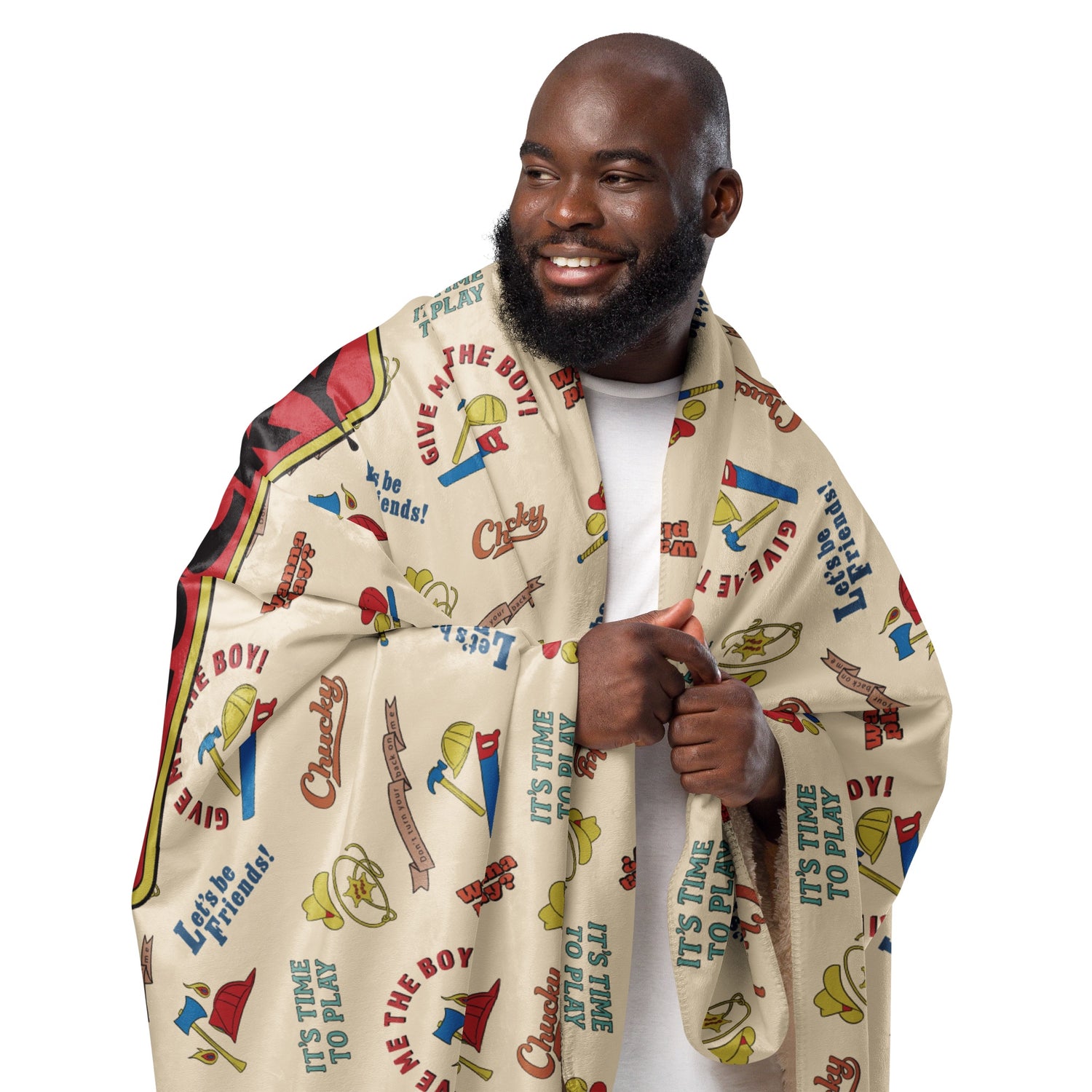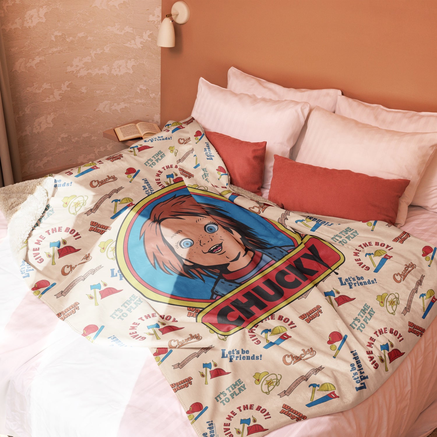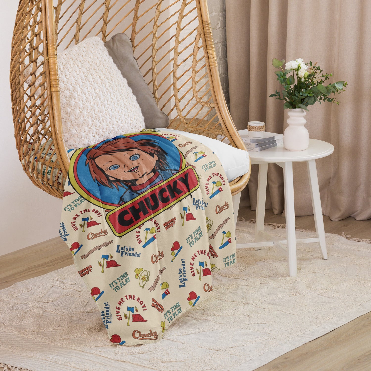 The Chucky Vintage Pattern Sherpa Blanket isn't just a blanket; it's a piece of nostalgia that wraps you in the playful spirit of Chucky. It's the perfect addition to your horror-themed decor or as a thoughtful gift for a fellow enthusiast.