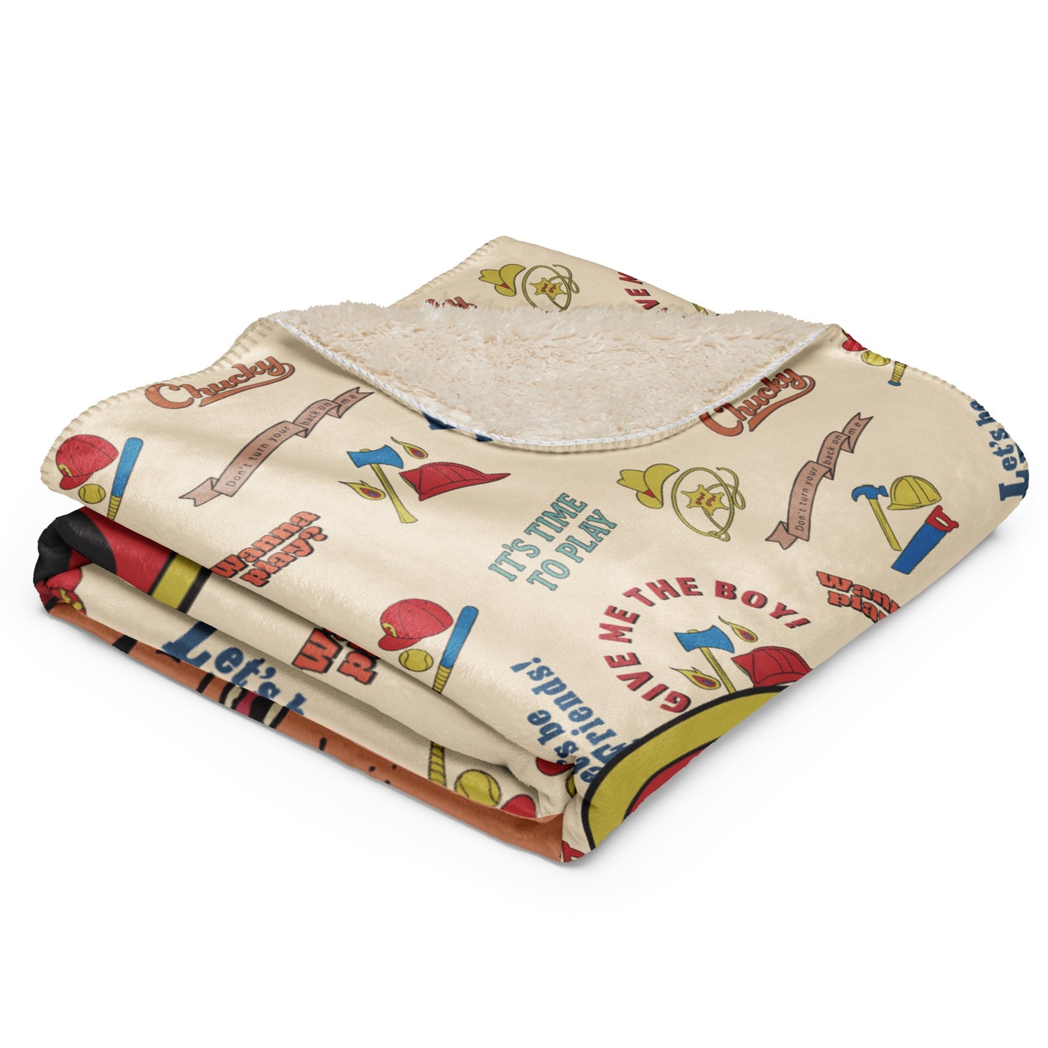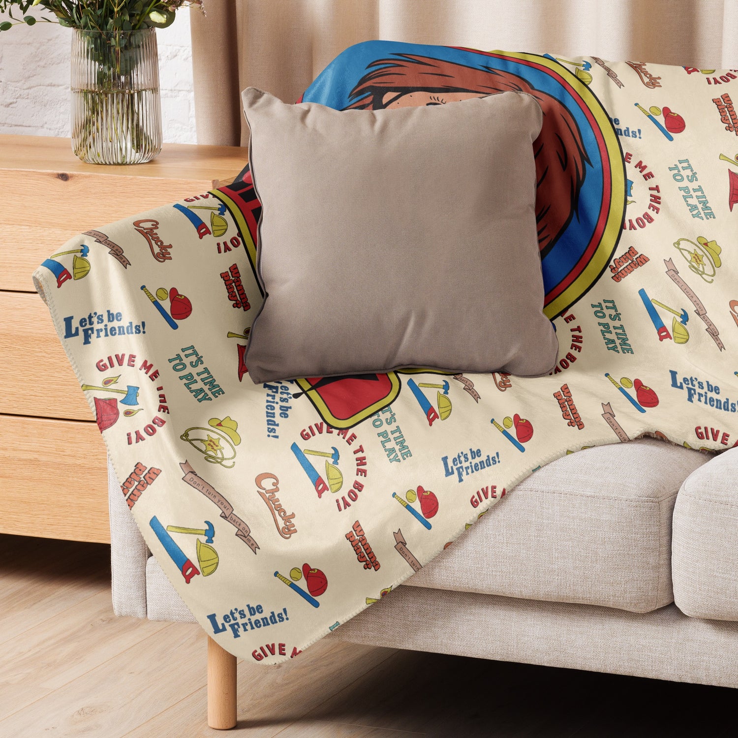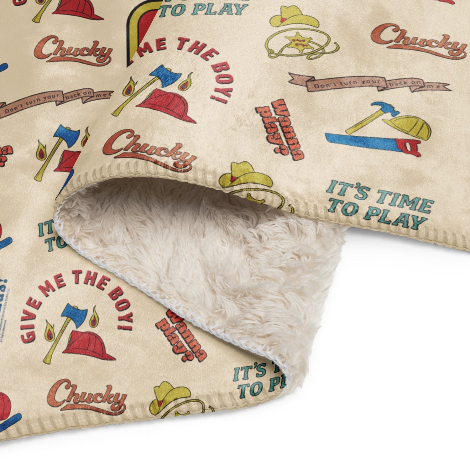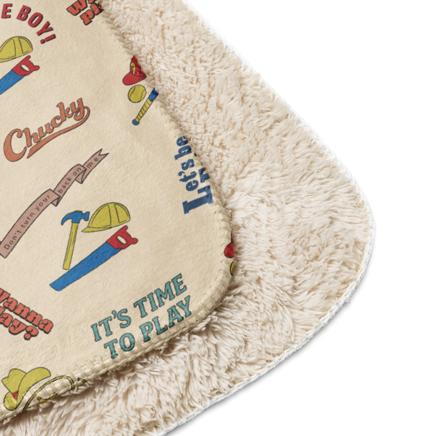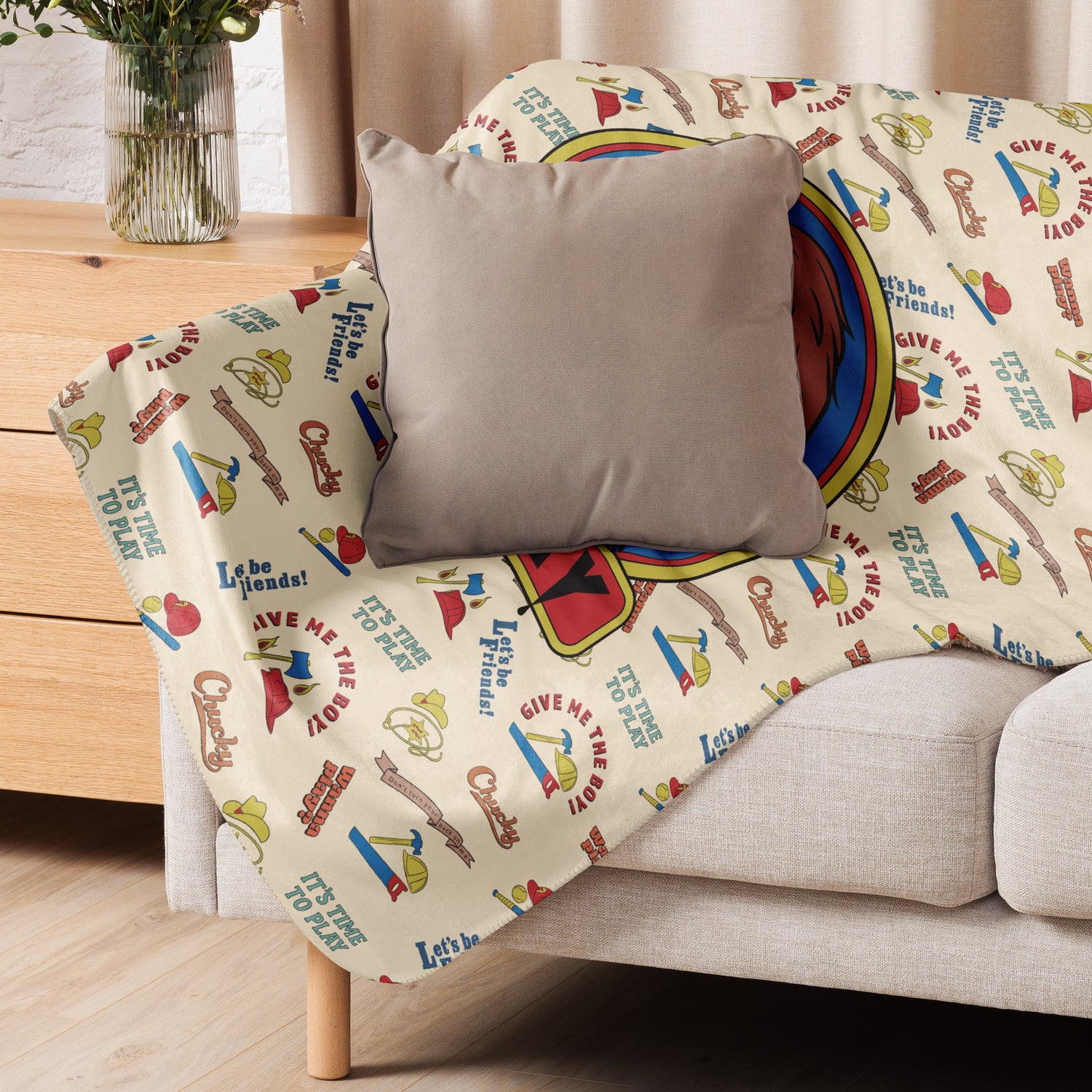 The Chucky Vintage Pattern Sherpa Blanket isn't just a blanket; it's a piece of nostalgia that wraps you in the playful spirit of Chucky. It's the perfect addition to your horror-themed decor or as a thoughtful gift for a fellow enthusiast.
