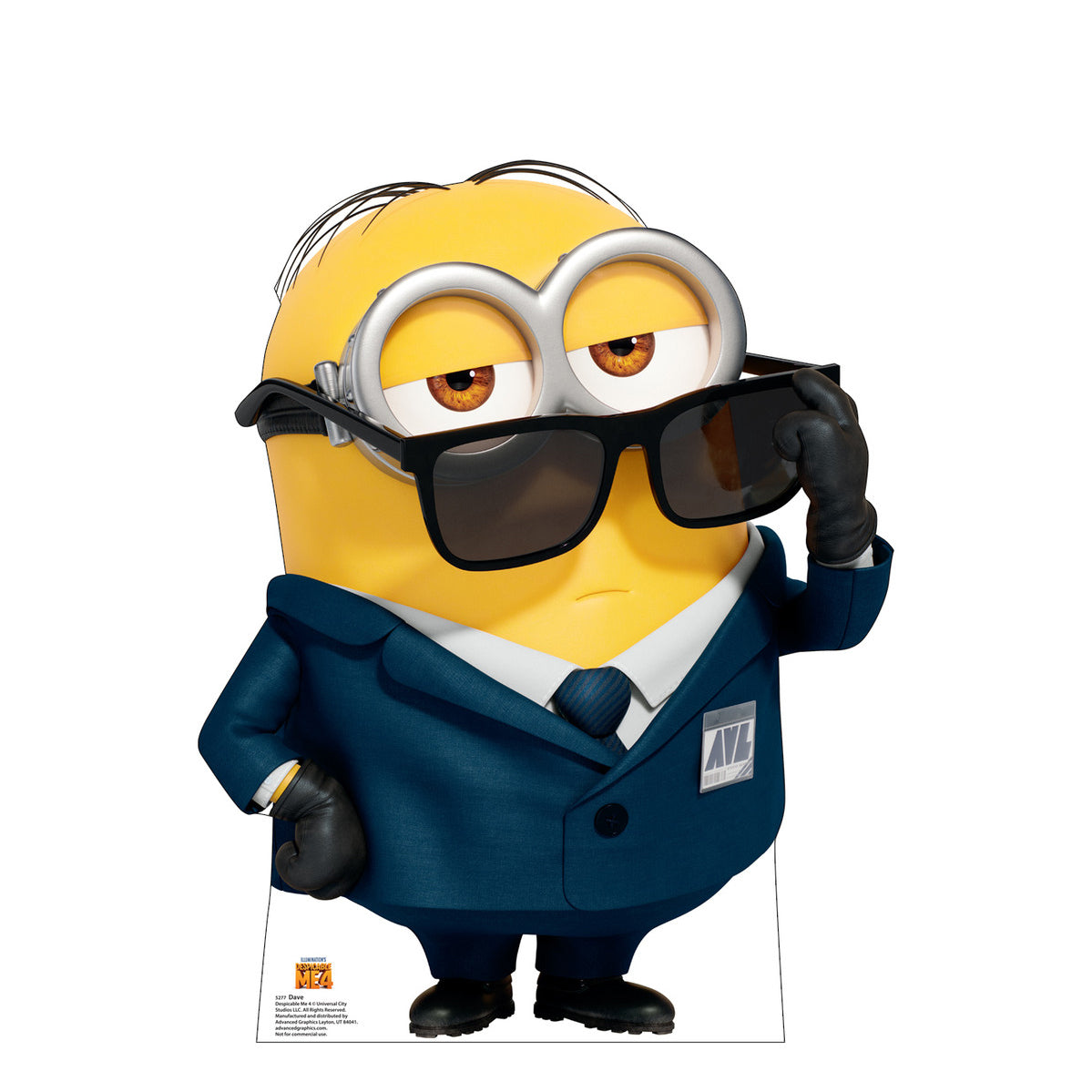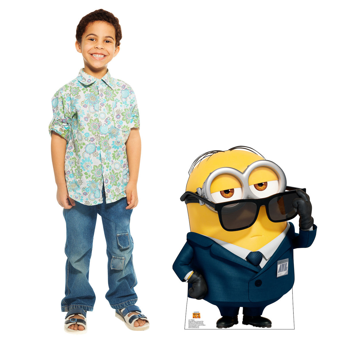 This is a life size cardboard cutout of Dave from Illumination's Despicable Me 4 movie. Easy to set up, it features a single-sided high-quality print on cardboard with an easel on the back so it can stand on its own. Cardboard standups make great decor for parties, photo ops and events! Order yours today!
