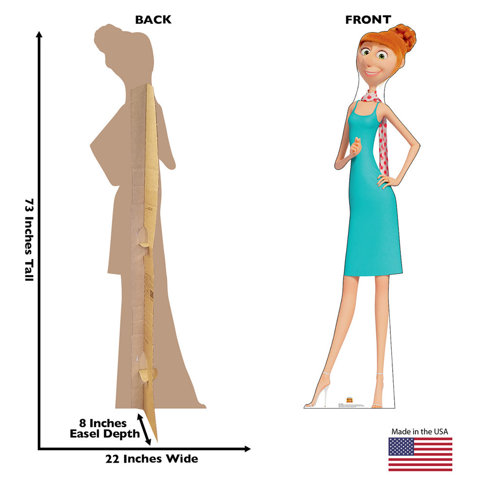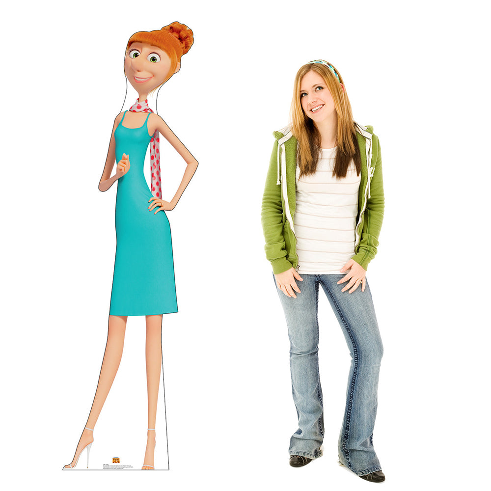 This is a life size cardboard cutout of Life-size cardboard standee of Lucy with back and front dimensions. from Illumination's Despicable Me 4 movie. Easy to set up, it features a single-sided high-quality print on cardboard with an easel on the back so it can stand on its own. Cardboard standups make great decor for parties, photo ops and events! Order yours today!