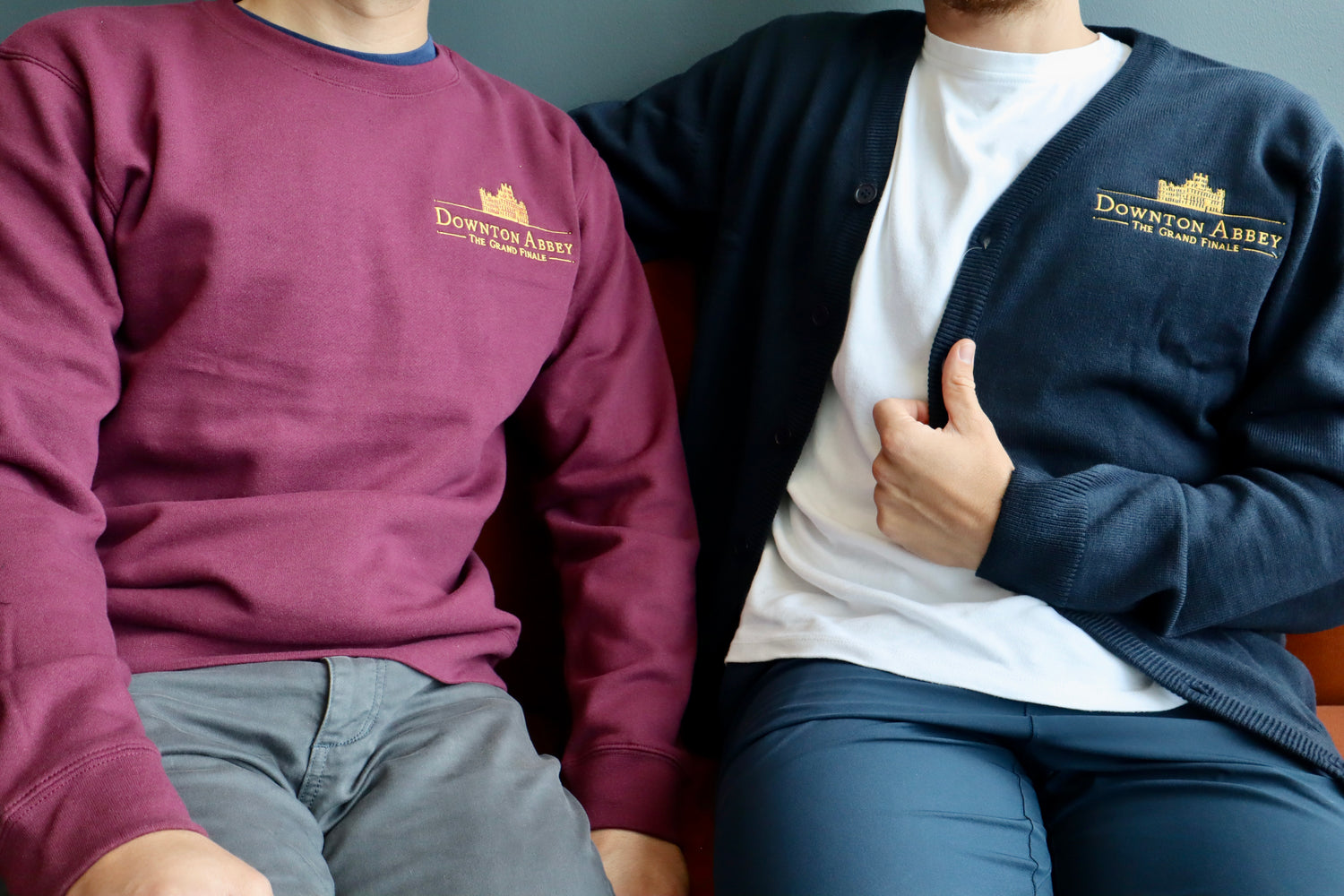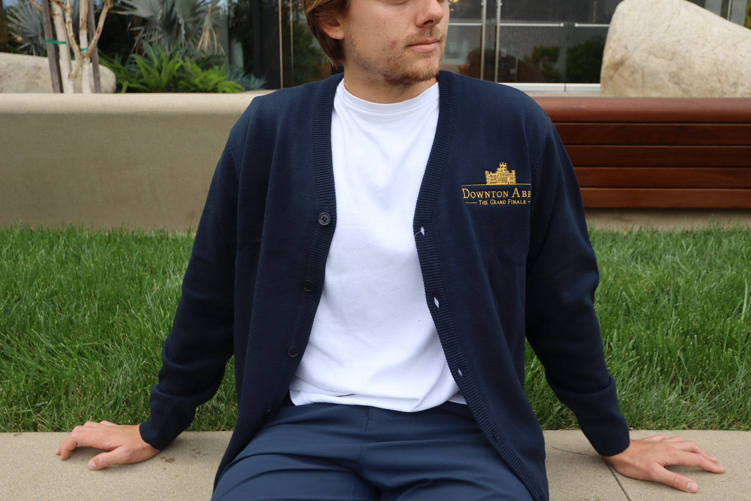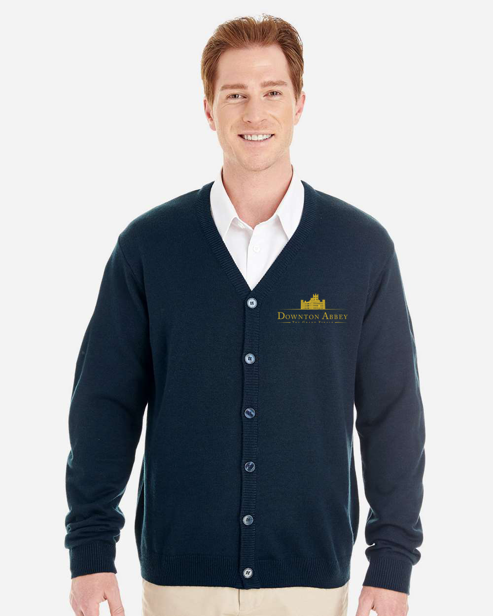 A soft, tailored knit featuring the Downton Abbey logo embroidered with subtle detail. This classic cardigan offers an elegant way to celebrate the legacy of the franchise.