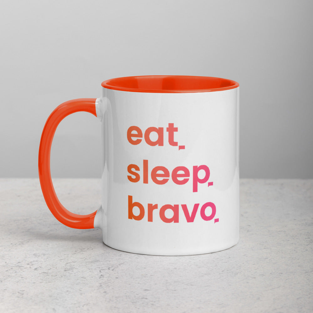 Sip your favorite beverage in style with the Eat. Sleep. Bravo Two-Tone Mug. Whether you're binge-watching your favorite Bravo shows or starting your day with a strong cup of coffee, this mug is a must-have for any Bravo fanatic.