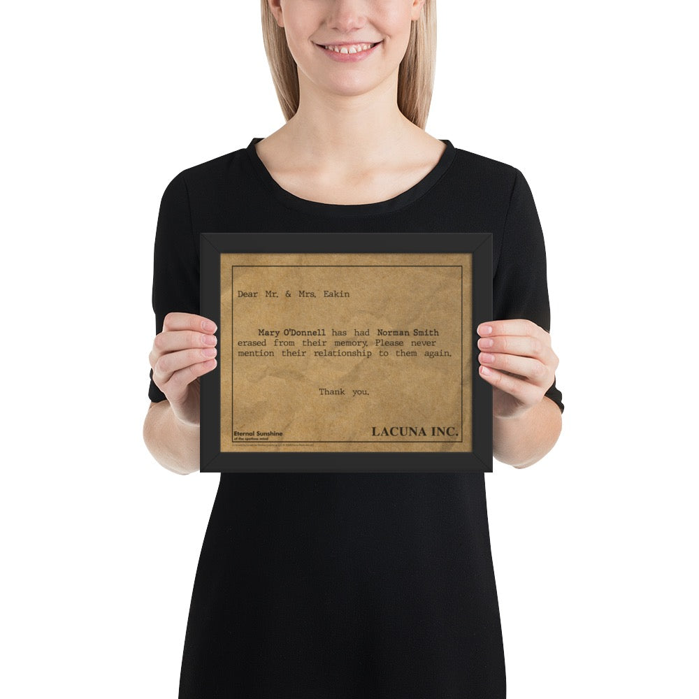Tell Mr. and Mrs. Eakin that Lacuna Inc. erased your memories like Clementine with our Eternal Sunshine of the Spotless Mind Personalized Framed Print. Customized with your own names, this beautifully framed piece is a heartfelt homage to one of cinema's most cherished romances, perfect for adorning your walls and reliving those bittersweet memories again and again.