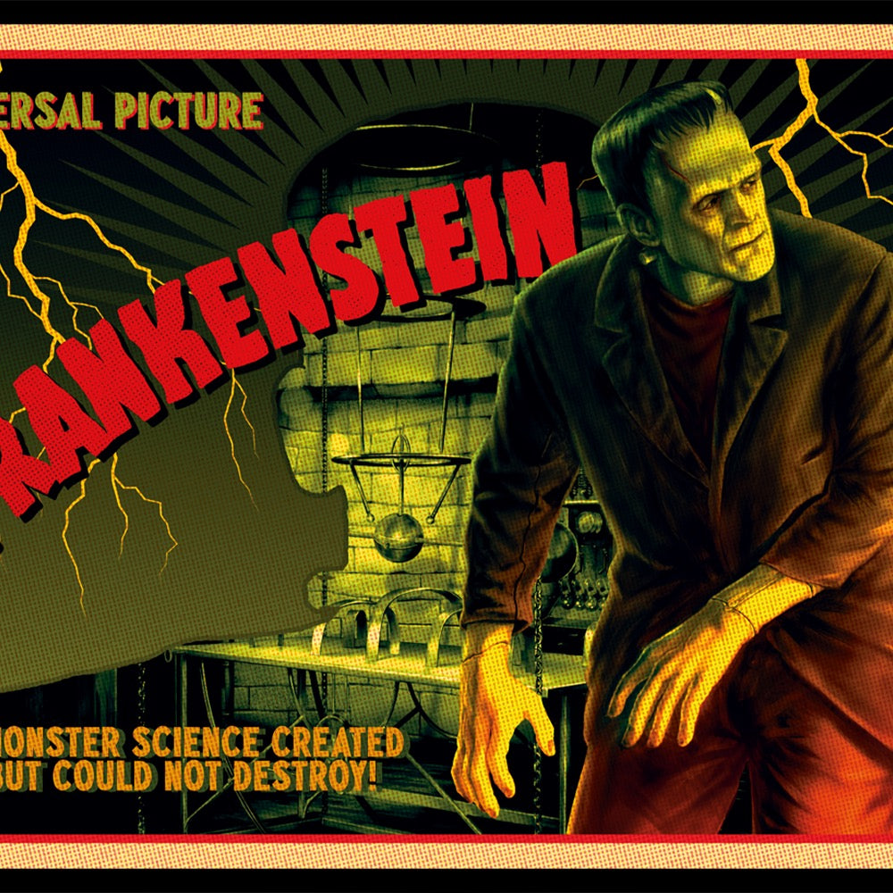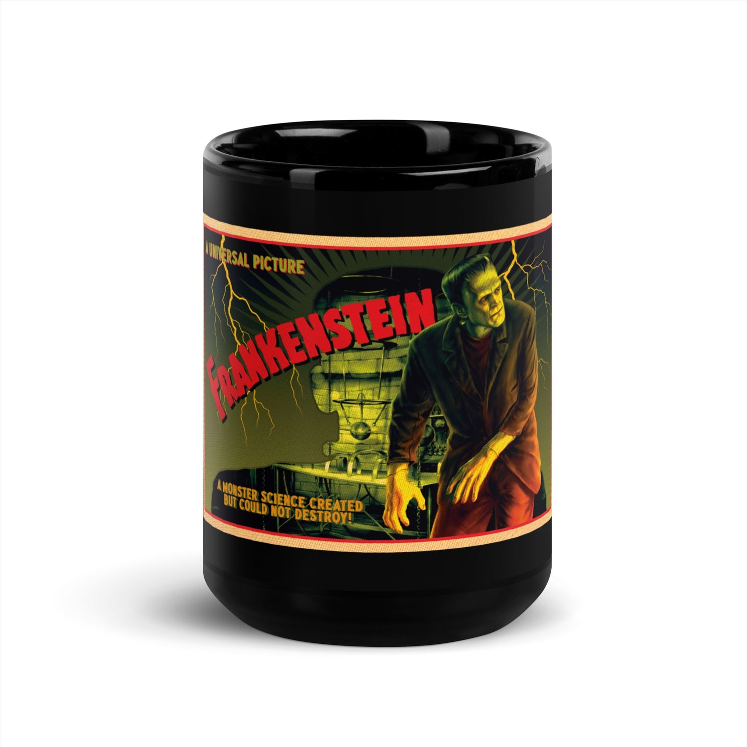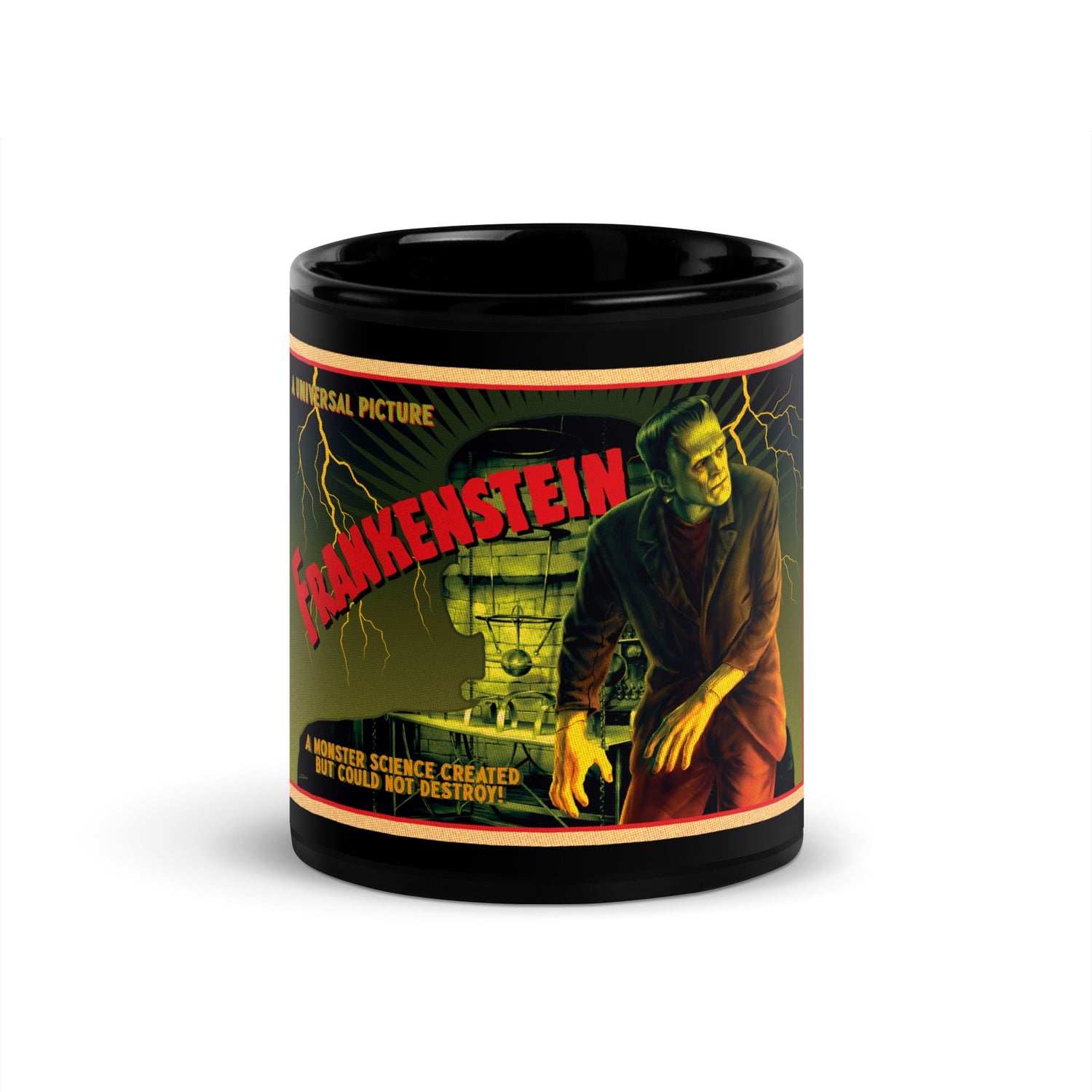 Start your day the Universal Monsters way! Enjoy a hot cup of coffee or tea in this Frankenstein Postcard Mug.