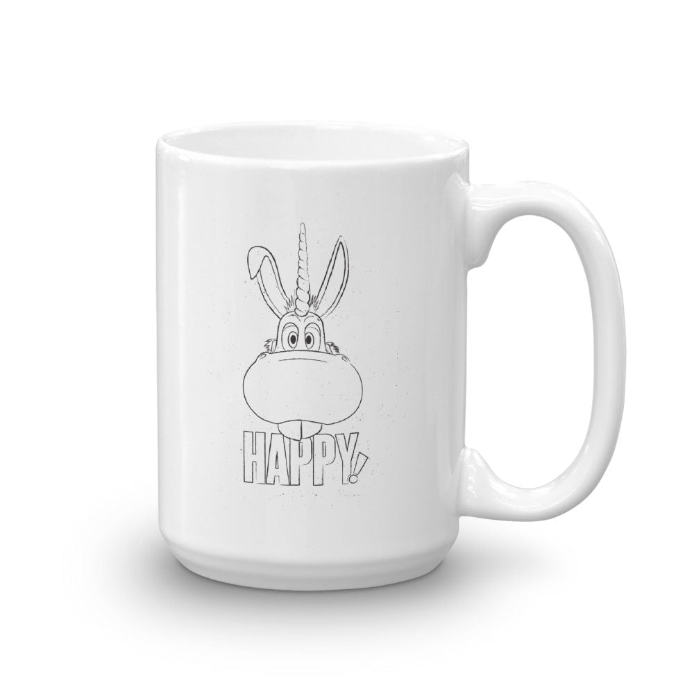 Your favorite imaginary blue winged horse, Happy can now make your morning even more productive! Get this classic ceramic white mug that features the sketch of Happy on one side and the Happy logo on the other.