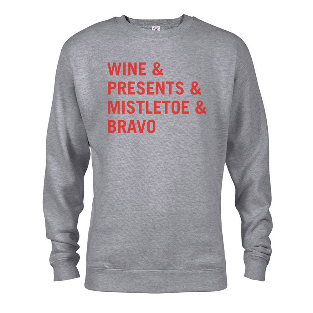 We aren't asking for much this holiday season...just wine. And presents. And mistletoe. And Bravo. Lots and lots of Bravo. Show off your holiday wish list in ultimate comfort by adding this Bravo Holiday Ampersand Fleece Crew Sweatshirt to your winter wardrobe! Made of cozy fleece materials and available in a variety of festive colors, this crew neck is perfect to wear all season long.