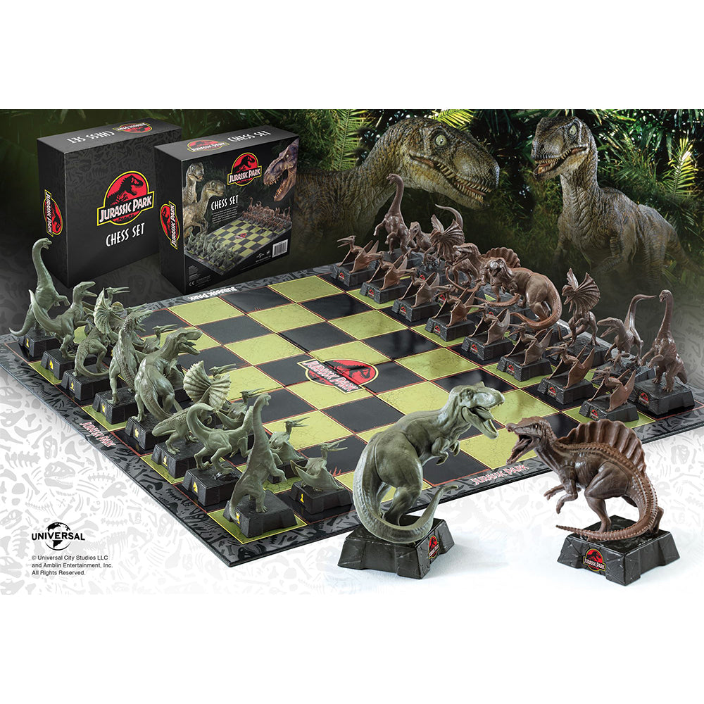 From the Jurassic Park franchise comes this roar-some new chess set! With 32 finely sculpted dinosaur pieces on a branded board, this set is lots of Jurassic reptilian fun for dinosaur lovers of all ages.