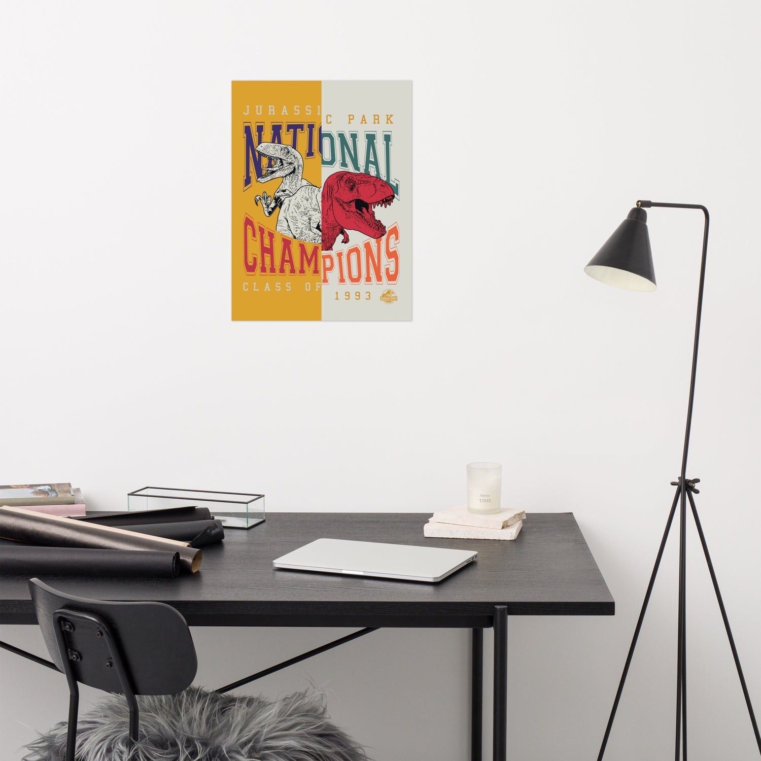 Immerse yourself in the epic world of Jurassic Park with the Retro Varsity National Champions Poster, a stunning and captivating tribute to the franchise's triumphs. This poster effortlessly combines retro aesthetics with a bold statement, making it the perfect centerpiece for any fan's collection or wall décor.