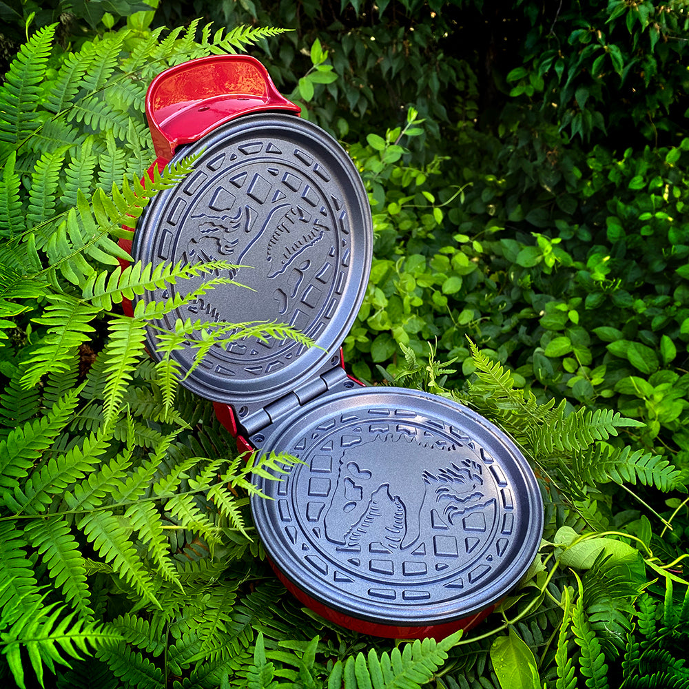 Jurassic Park enters in your kitchen with this striking, full-color waffle maker. Detailed, die-cast aluminum plates on the inside are easy to clean and make a perfect impression of T-Rex's iconic logo every time. Pour in batter, eggs, brownies, shredded potatoes, or whatever strikes your fancy. Dual indicator lights tell you when it's time to pour batter and when your waffles are cooked. Be a superhero at every meal.