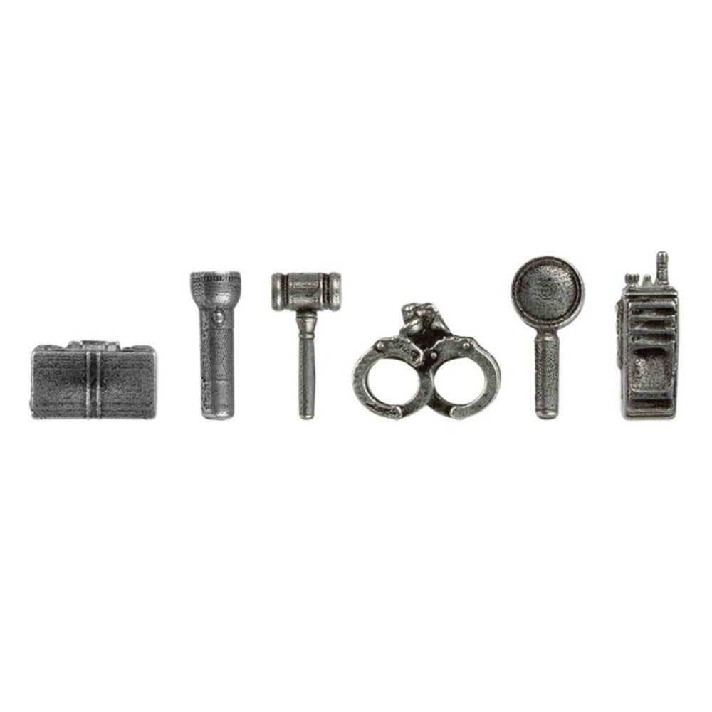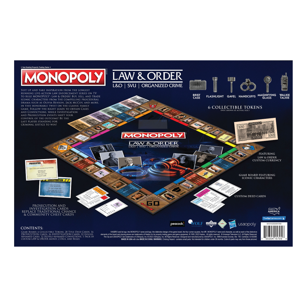 When you play the Monopoly Law and Order Board Game, you'll take on the roles of NYPD homicide detectives partnering with Lennie Brisco to crack cases! As you make your way around the board using the six custom collectible tokens -- a brief case, flashlight, gavel, handcuffs, magnifying glass, and walkie talkie -- you'll encounter investigation and prosecution cards, and be asked to pay fees for being an expert witness or police pension contribution. With so many twists and turns, this board game is sure to keep everyone on their toes - just like a real life investigation!