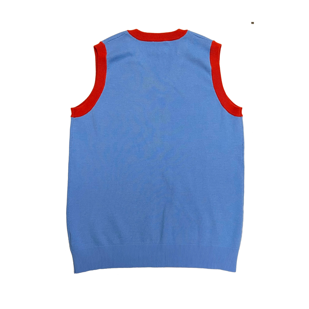 Style this jacquard knitted v-neck vest during winter or summer in Montauk. Inspired by Eternal Sunshine of the Spotless Mind's Clementine, this sweater vest provides ultimate comfort with a soft, cozy hand feel.