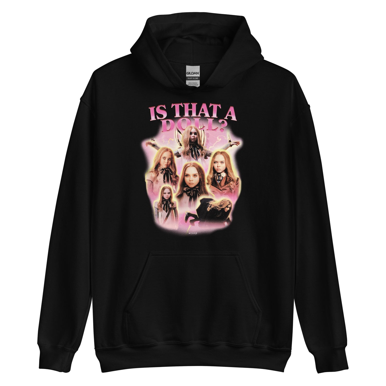 Prepare to embrace the eerie allure of cinematic horror with the M3GAN Heartthrob Unisex Hoodie in the dark and mysterious black color. This hoodie seamlessly fuses the world of spine-chilling cinema with an iconic Heart Throb design, making it a must-have for fans of the macabre and stylishly dark fashion.