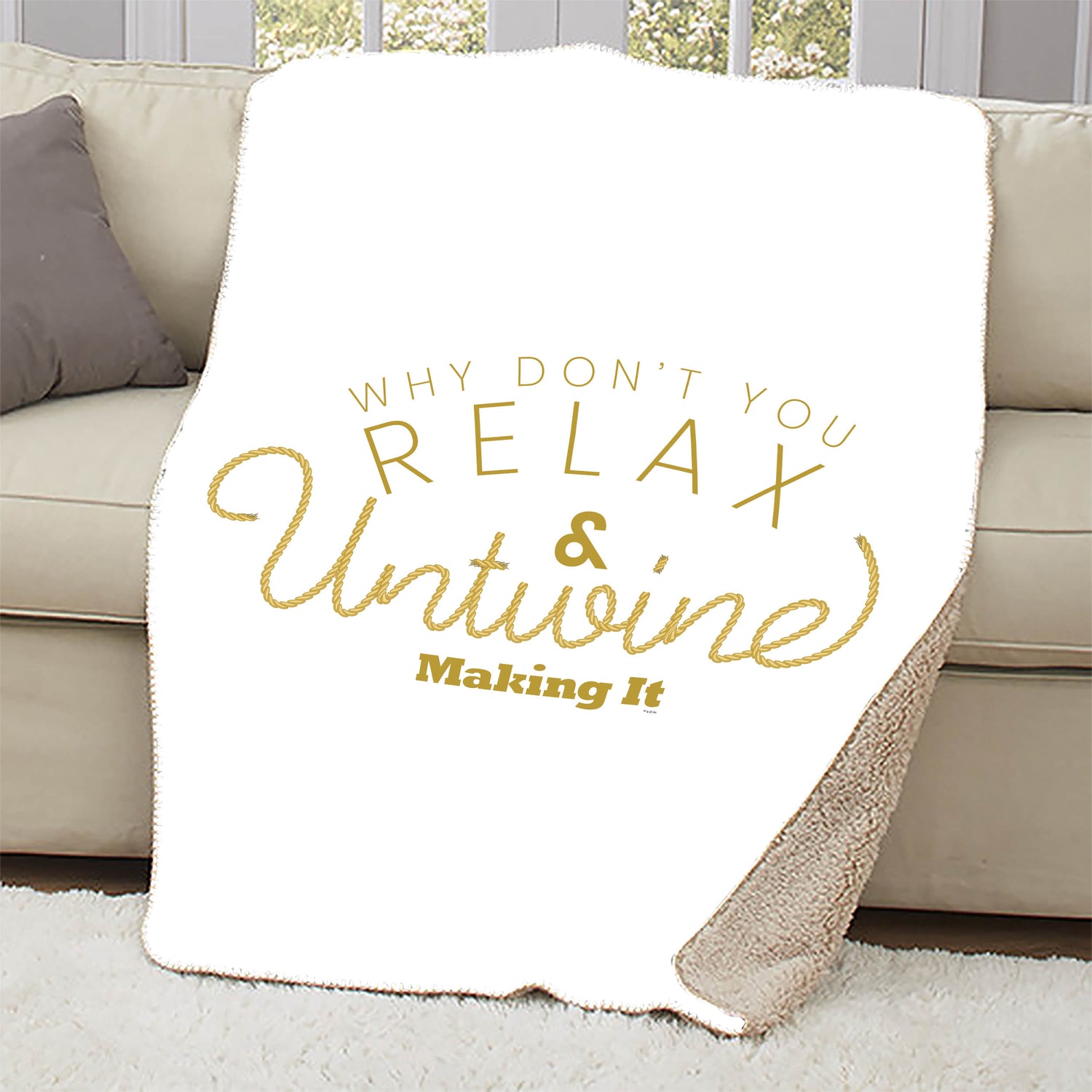 Snuggle up and watch your favorite craft making show this year with this Making It Relax and Untwine Sherpa Blanket. This blanket is the perfect way to inspire your creativity imagination and whimsy. Get yours today and start crafting!PRODUCT DETAILS: