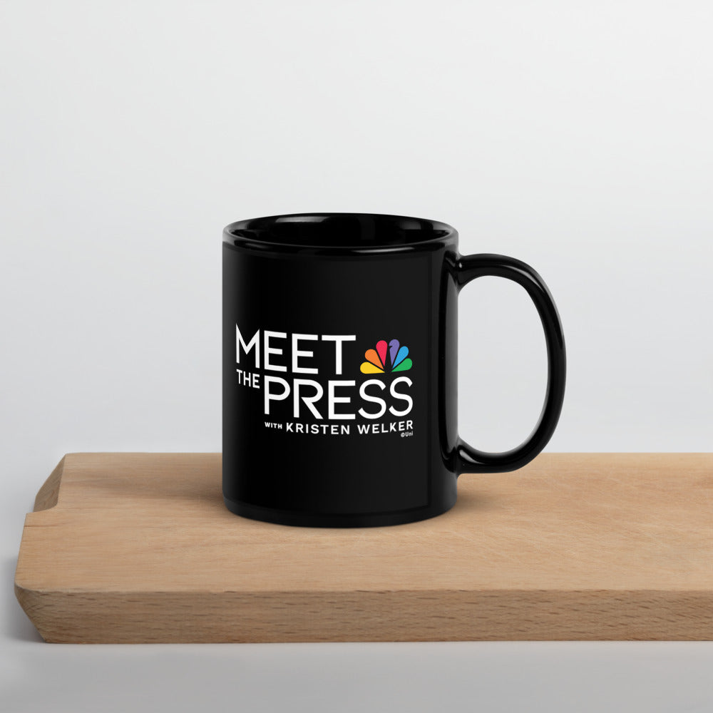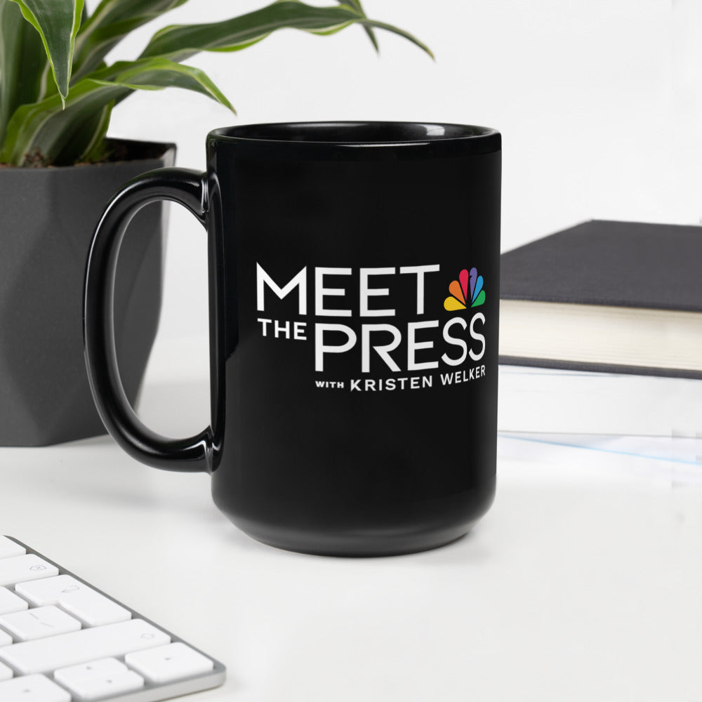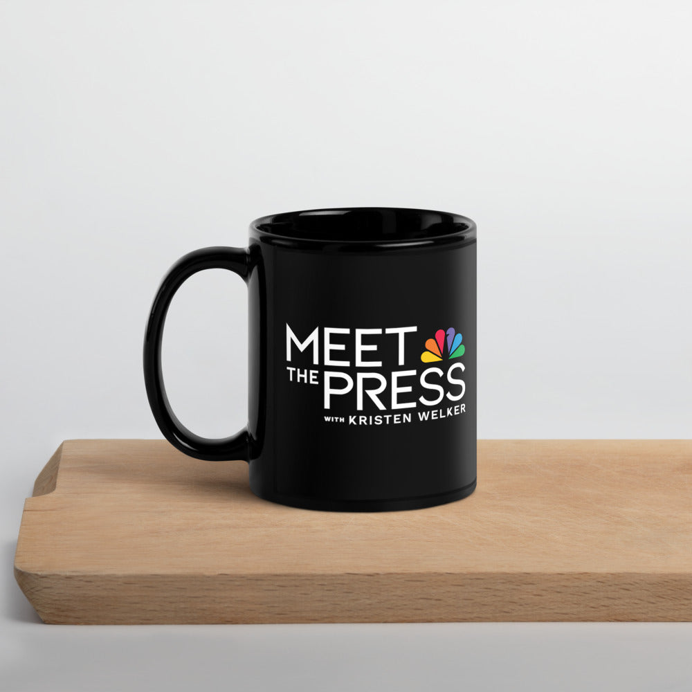 If it's time for a caffeinated pick-me-up it's our Meet the Press Logo Black Mug. This mighty mug is nice and glossy and features the iconic logo.