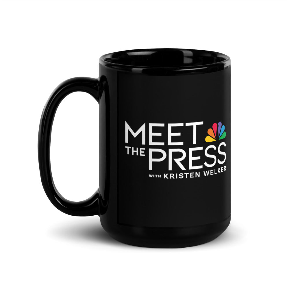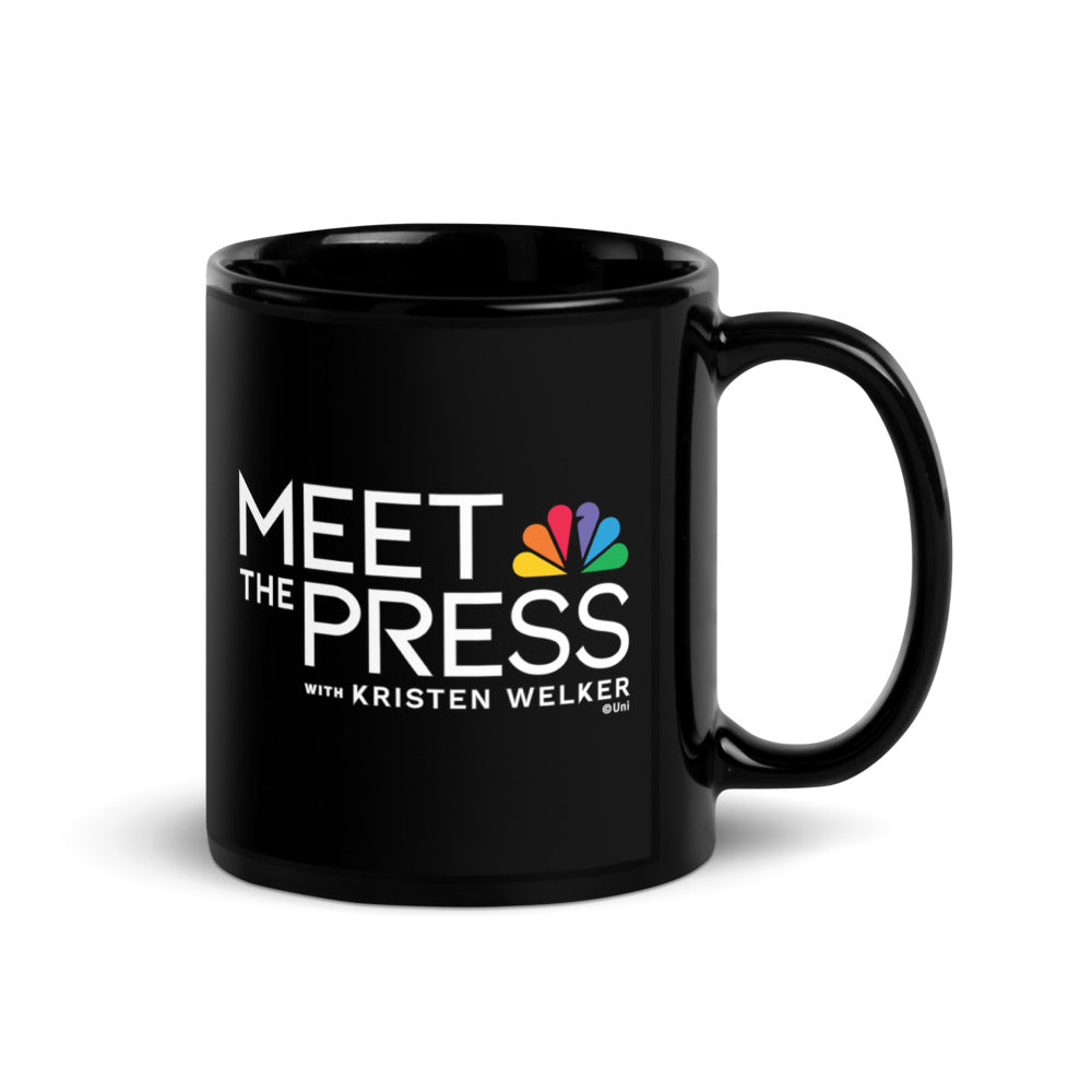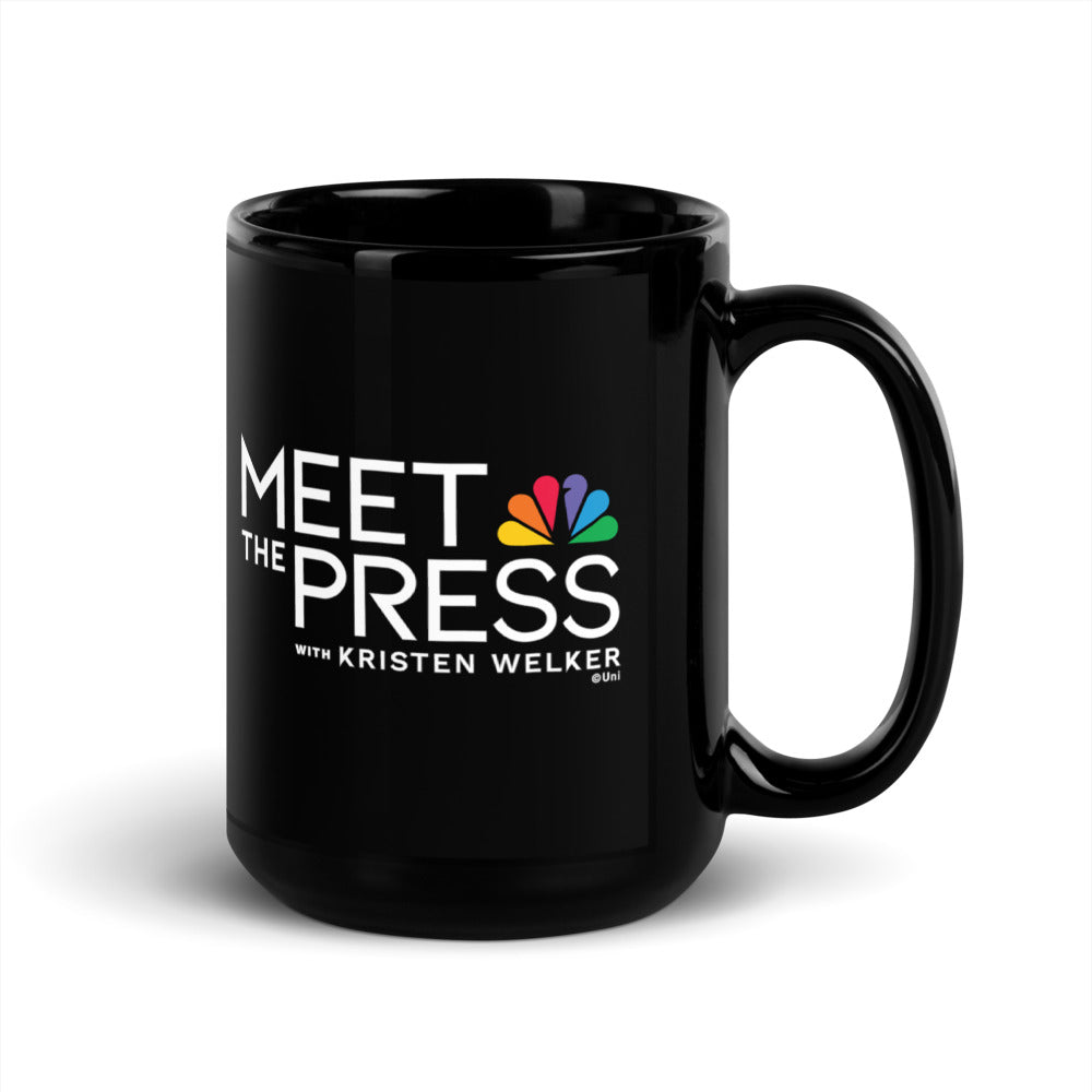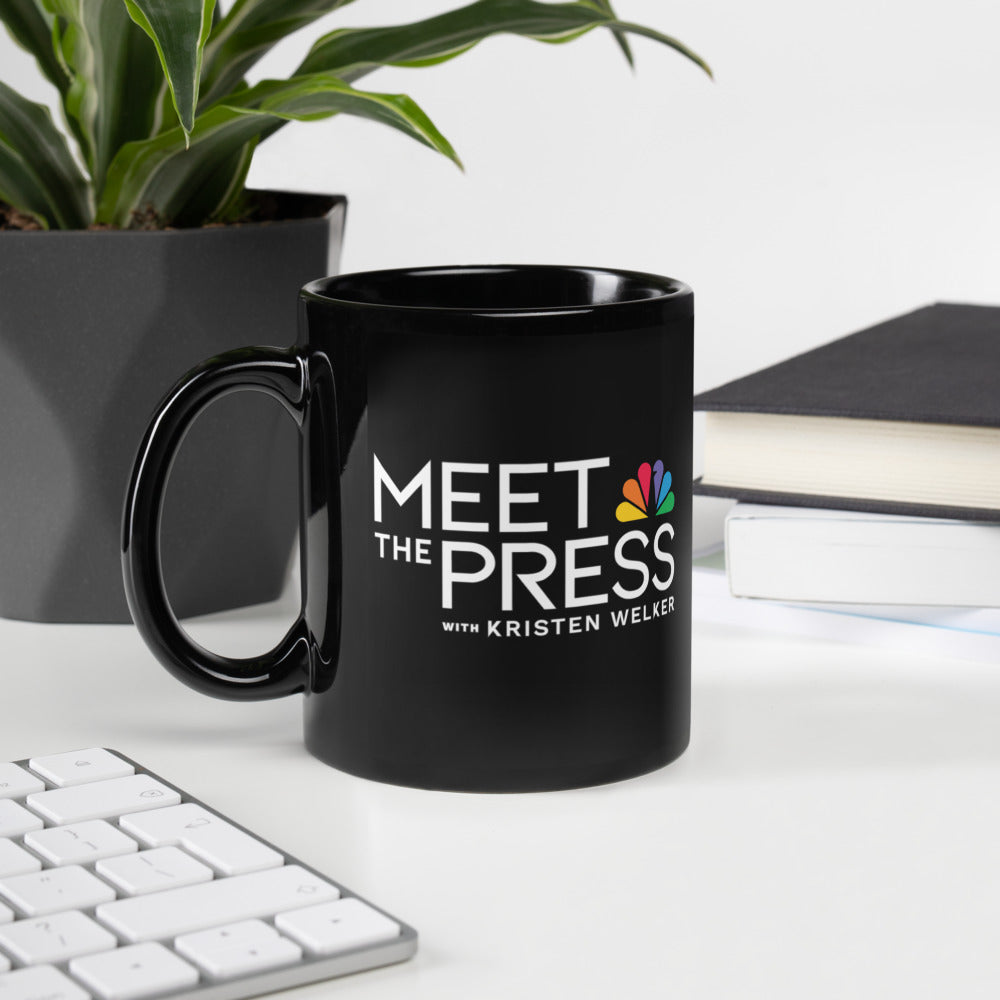 If it's time for a caffeinated pick-me-up it's our Meet the Press Logo Black Mug. This mighty mug is nice and glossy and features the iconic logo.