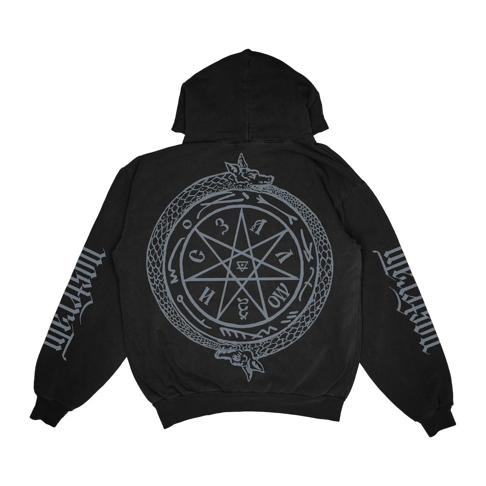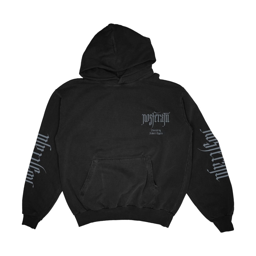 Shop this exclusive Nosferatu Hoodie featuring the logo on chest and sleeves, with a sigil on the back.