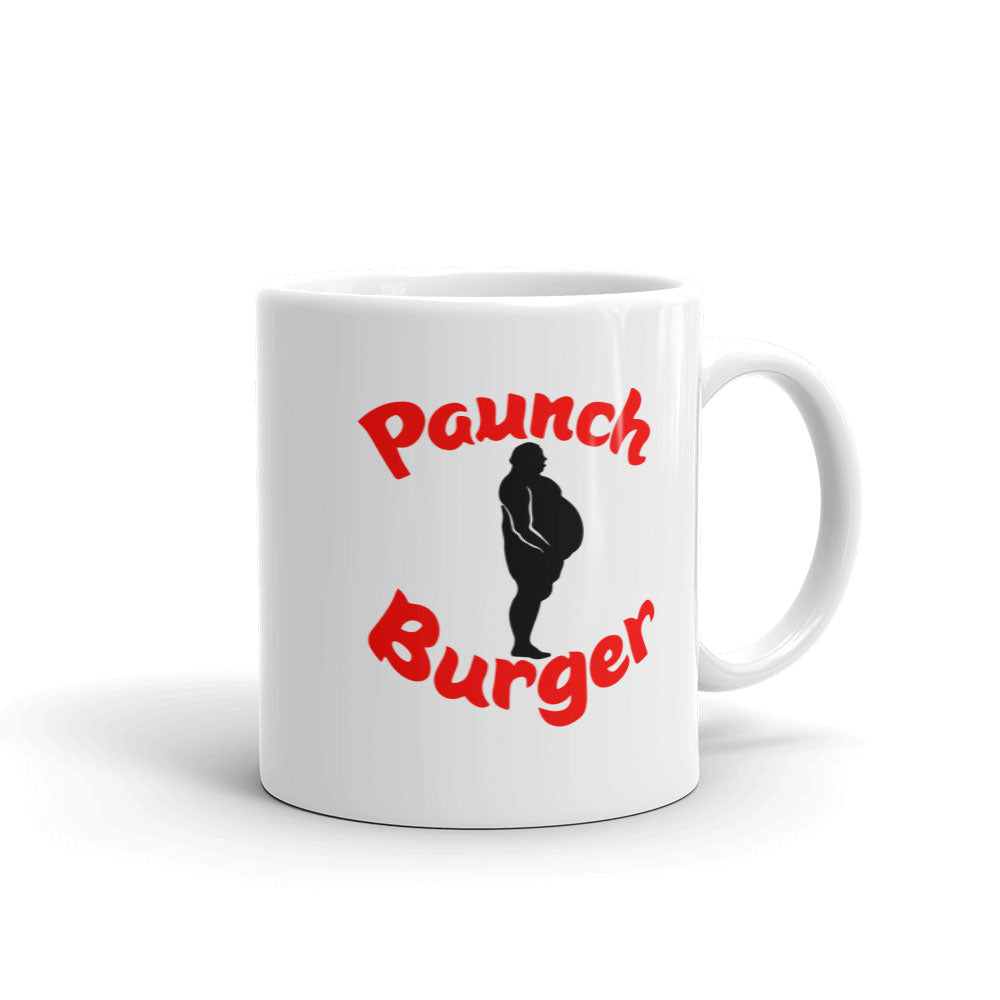 Healthy food is for suckers! The Paunch Burger Dinner for Breakfast Burger is the perfect pairing for our official Paunch Burger Mug. Fill it up with your favorite beverage and dive in!The perfect size for your favorite morning beverage or late night brew. Large easy-grip handle. Treat yourself or give as a gift to someone special.