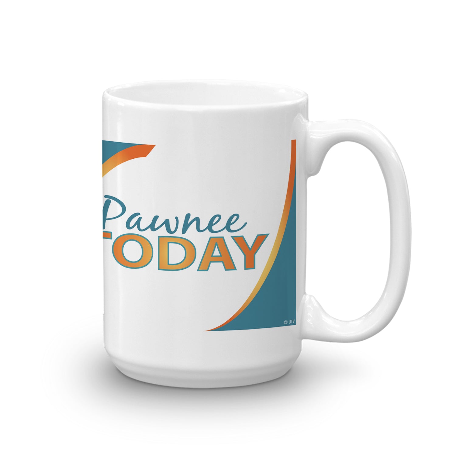They may be intense and jump to conclusions quickly, but who doesn't love the cast and crew of Pawnee Today? Show some love for your favorite talk show by enjoying your favorite beverages from this Parks and Recreation Pawnee Today White Mug.