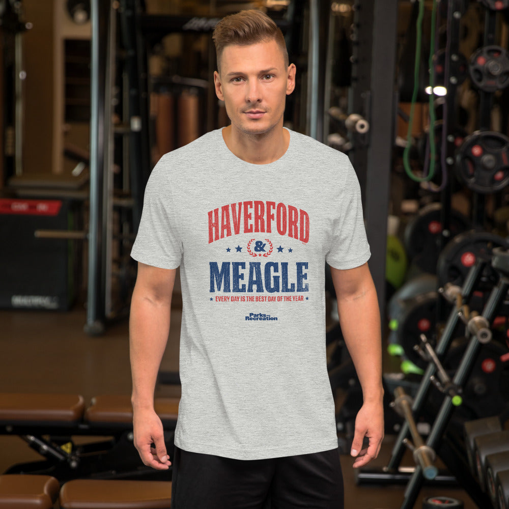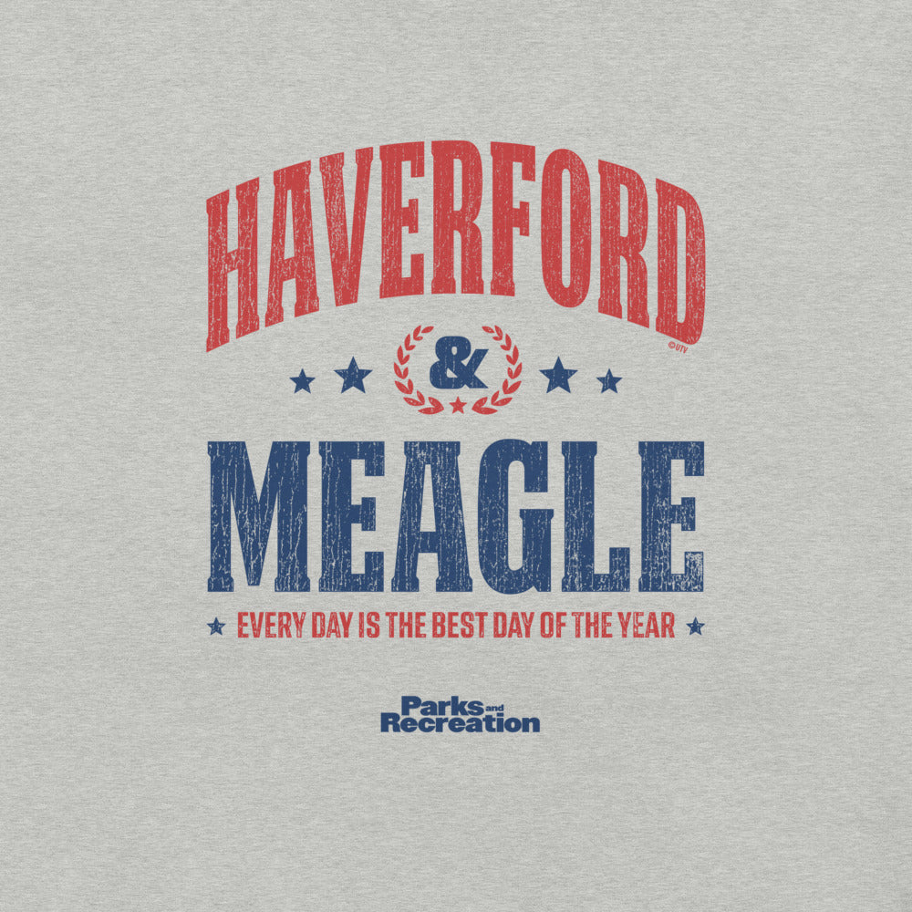 This Parks and Recreation Haverford & Meagle T-Shirt lets you show some love for your favorite show everywhere you go! Comfortable and classic, this t-shirt is the perfect cozy addition to any fan's wardrobe.