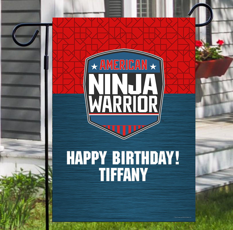 This American Ninja Warrior personalized flag will bring high levels of energy and excitement to any theme party! Let everyone know where the party is by placing this flag outside your house on the day of the big celebration! Please note that "Happy Birthday" is not included in the design.