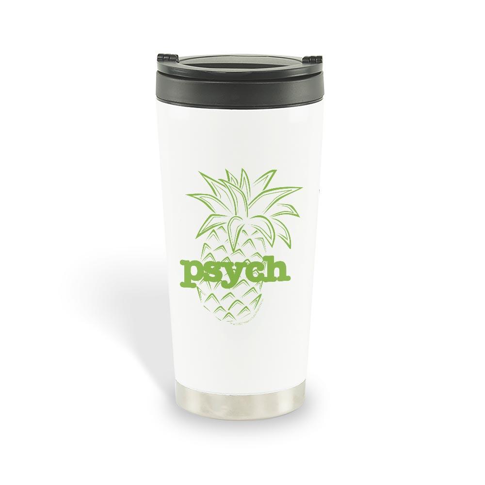 Have you done your research to find the pineapple in each episode of Psych? Now you can add it to your list. Our exclusive Pineapple travel mug allows you to show off your Pineapple Pride at any time! After all, it's pineapple-o-clock somewhere.