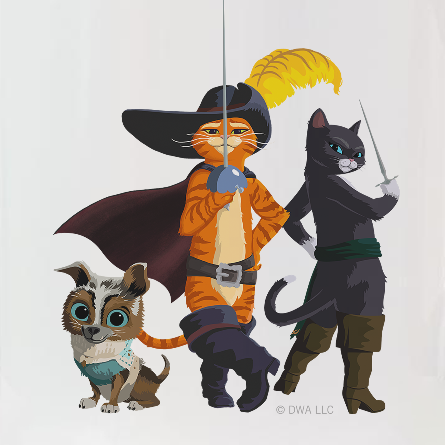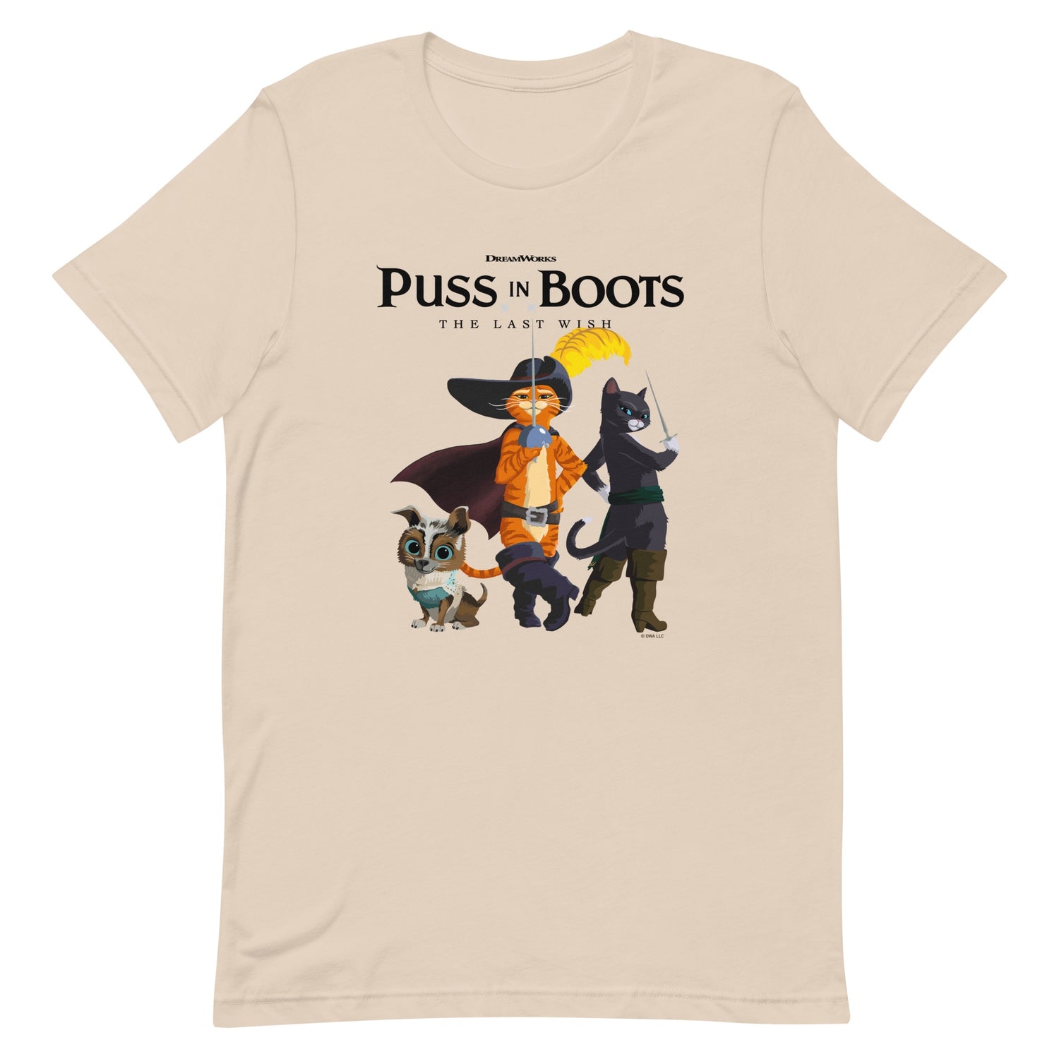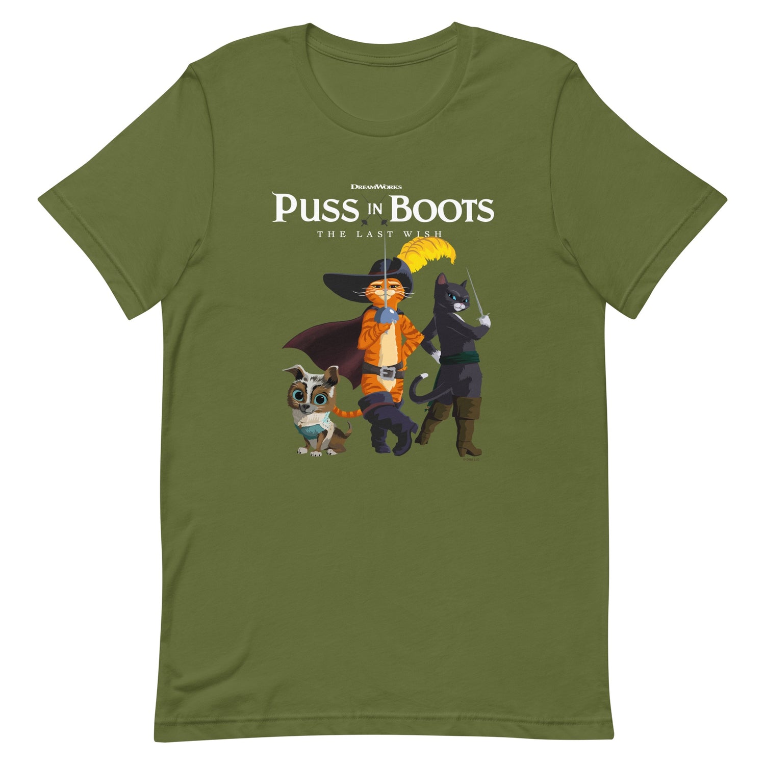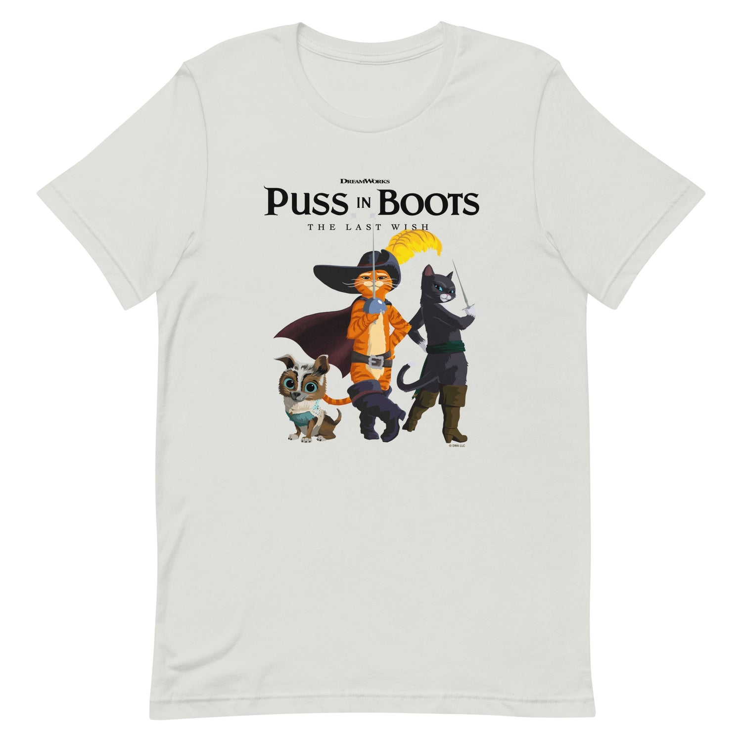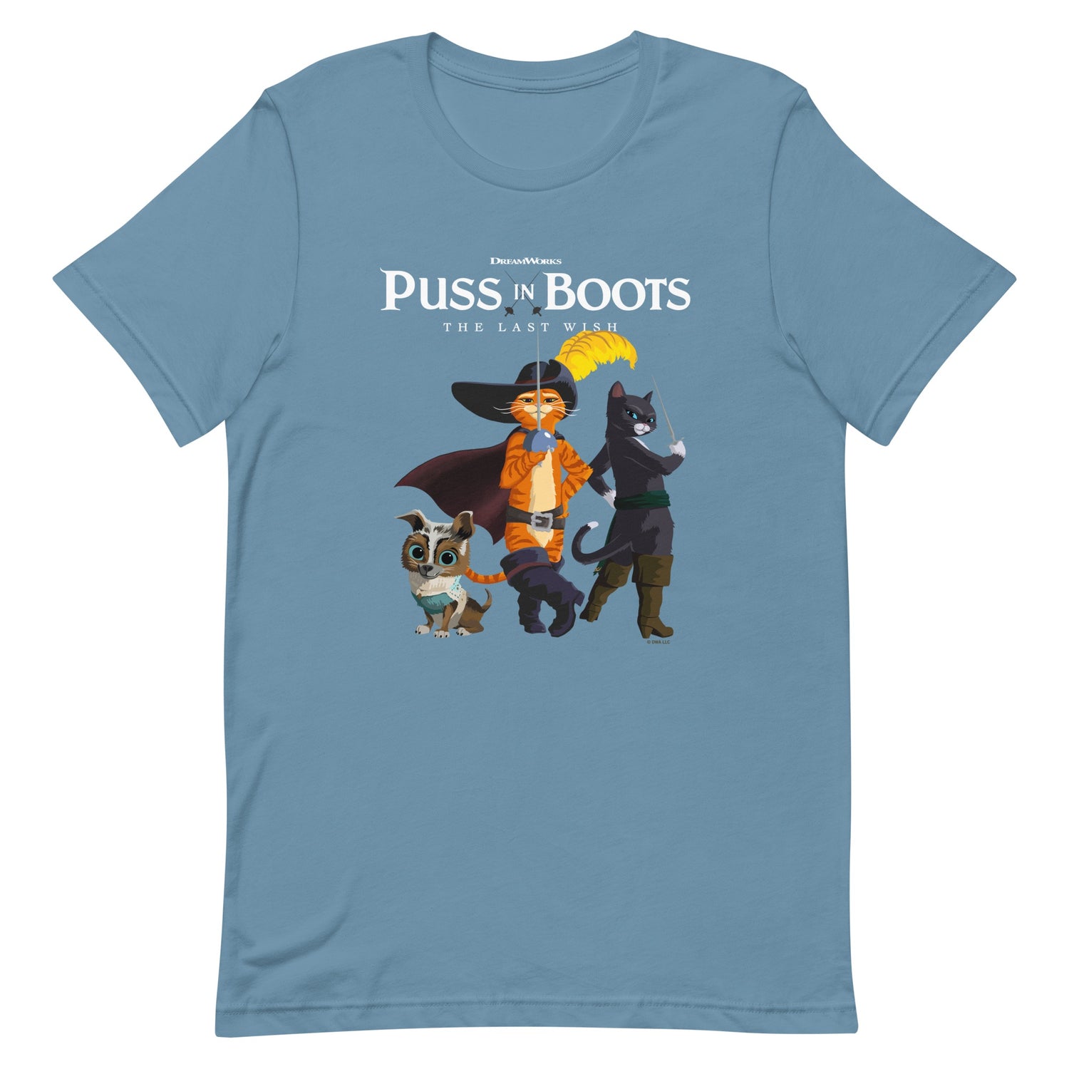 If you loved watching Puss, Kitty, and Perrito on their epic journey to find the mythical Last Wish, the Peacock Shop has the shirt for you! Available in 4 stylish colors, this Puss In Boots: The Last Wish Characters T-Shirt features all 3 lovable characters.