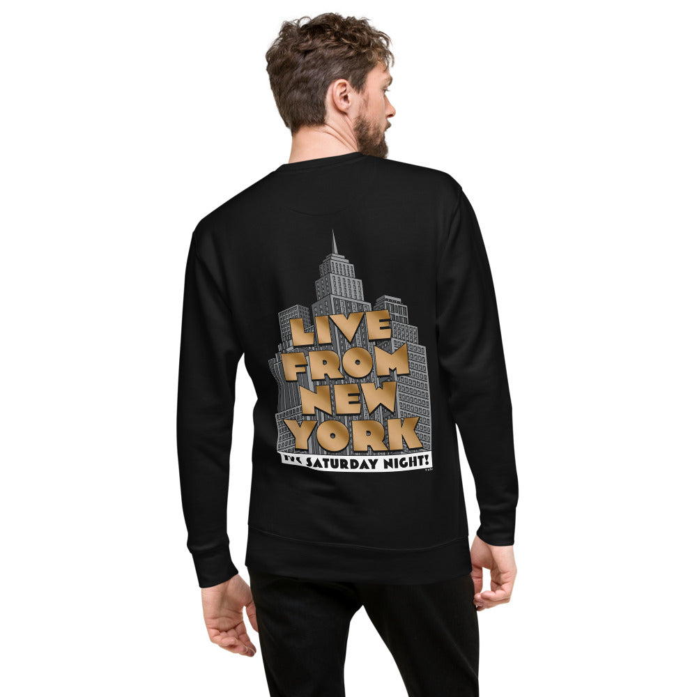 Celebrating 50 years of legendary comedy! It doesn't matter the day of the week; you're an SNL fan all day every day. Show it with the Saturday Night Live - Live From New York Crewneck. The black crewneck features the iconic intro phrase that is perfect for any fan.