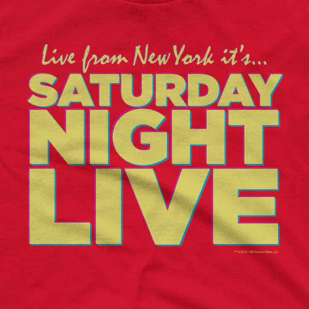 It doesn’t matter the day of the week you’re an SNL fan all day every day. Show it with the Saturday Night Live Live From New York T-Shirt. This black tee features the intro phrase from every episode “Live from New York it’s… Saturday Night Live”.This shirt features short set-in sleeves and a seamless rib knit collar. There are taped neck and shoulder seams for durability and two-needle hemmed sleeves so the bottom won't unravel.