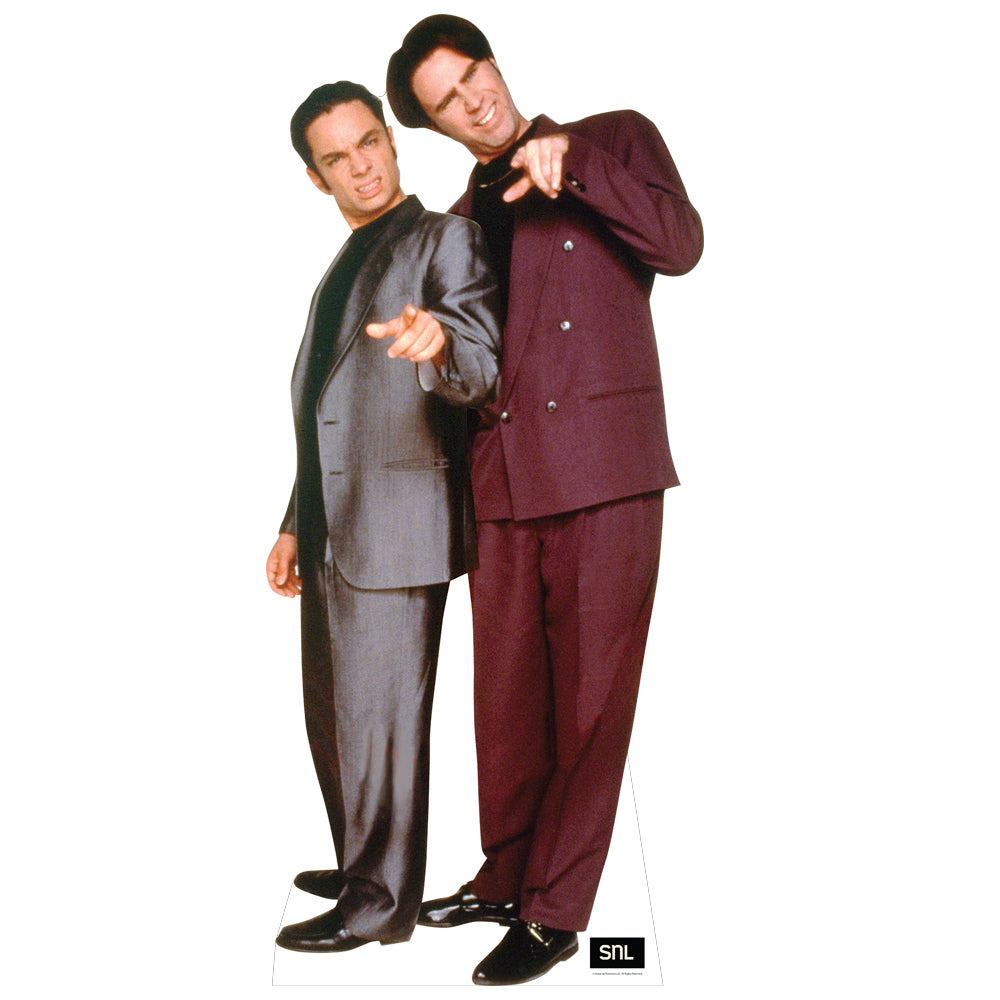 This is a SNL The Roxbury Guys Life-size cardboard standee. Easy to set up, it features a single-sided high quality print on cardboard with an easel on the back so it can stand on its own. Life-size cardboard standee's make great decor for parties, photo ops and events! Order yours today!
