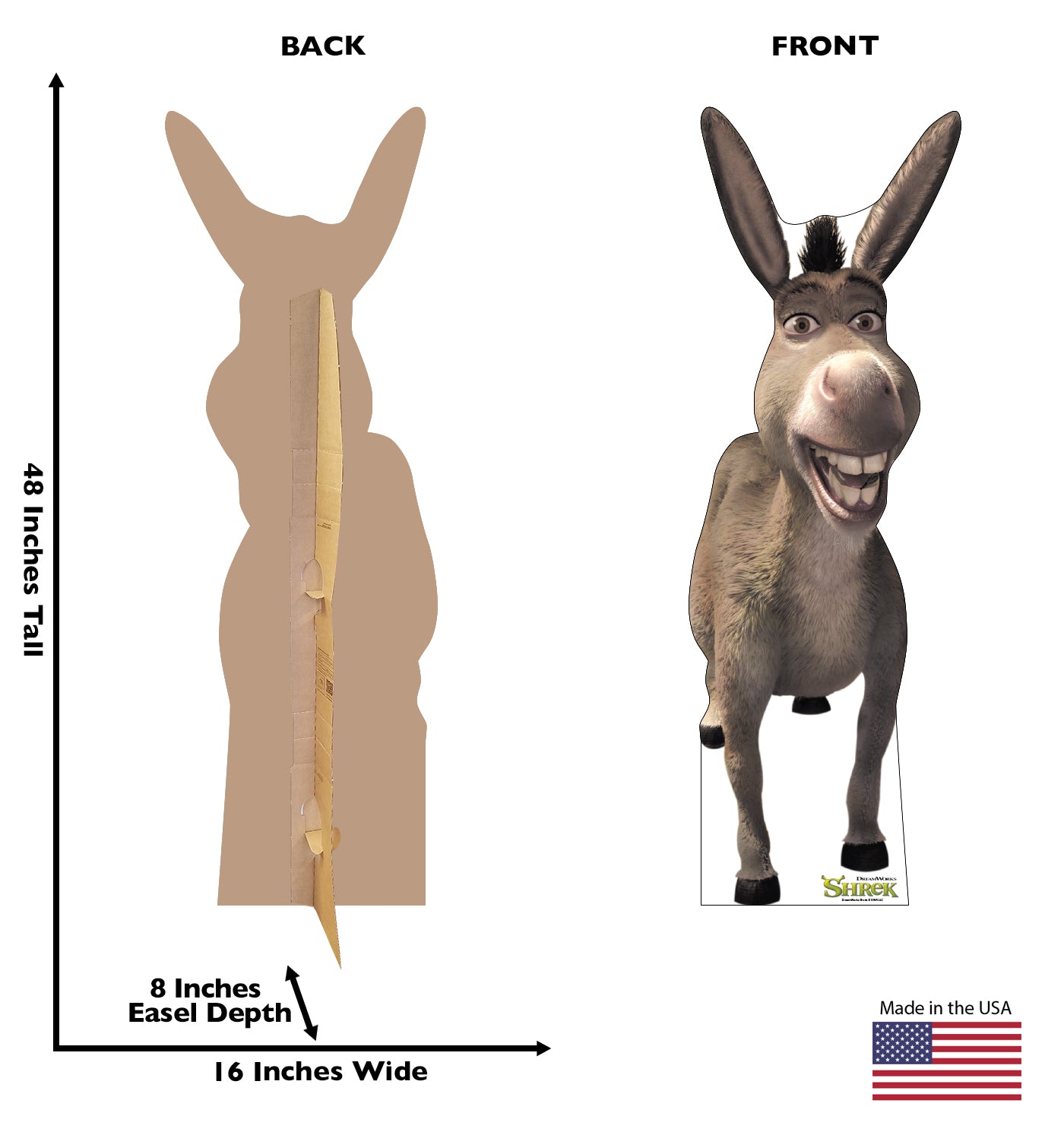 This is a Shrek Donkey Life-size cardboard standee. Easy to set up, it features a single-sided high quality print on cardboard with an easel on the back so it can stand on its own. Life-size cardboard standee's make great decor for parties, photo ops and events! Order yours today!