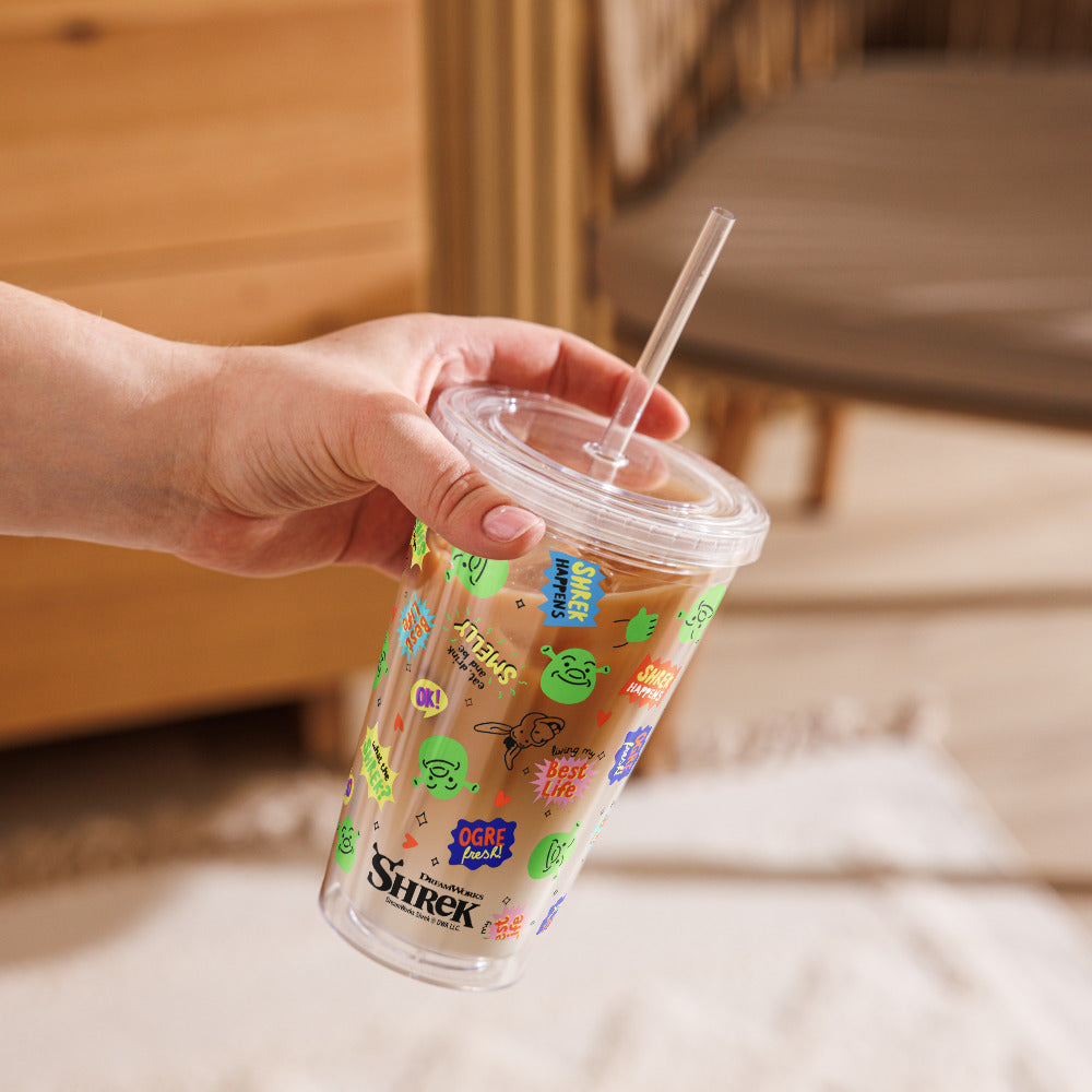 Introducing the Shrek Pattern Plastic Tumbler, a must-have for any Shrek fan! This premium quality tumbler combines functionality with fun, ensuring your favorite beverages stay at the perfect temperature while showcasing your love for the ogre.