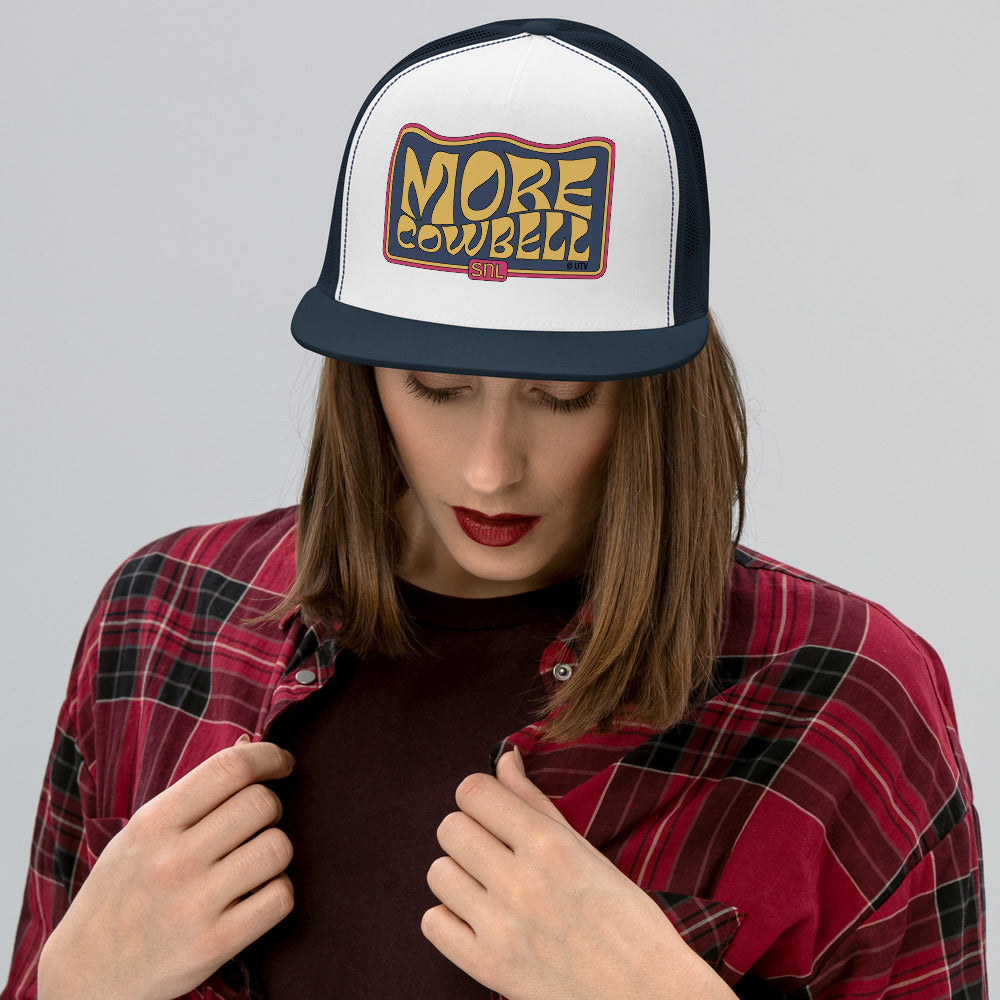 Channel one of Saturday Night Live's most iconic sketches with the SNL More Cowbell Trucker Hat! Perfect for fans of the legendary "More Cowbell" skit, this classic trucker hat features a breathable mesh back and adjustable snap closure for all-day comfort.